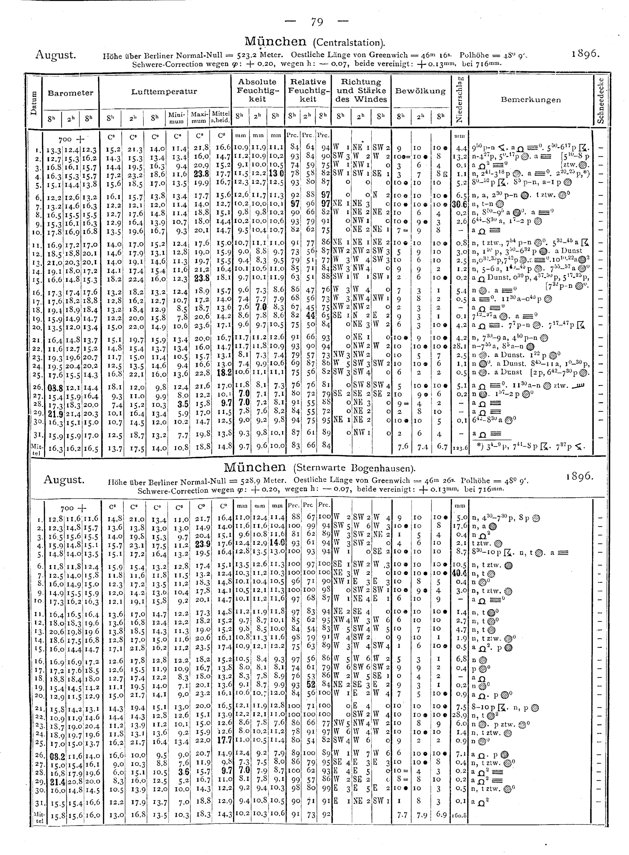 Tägliche Beobachtungen der Stationen II. Ordnung