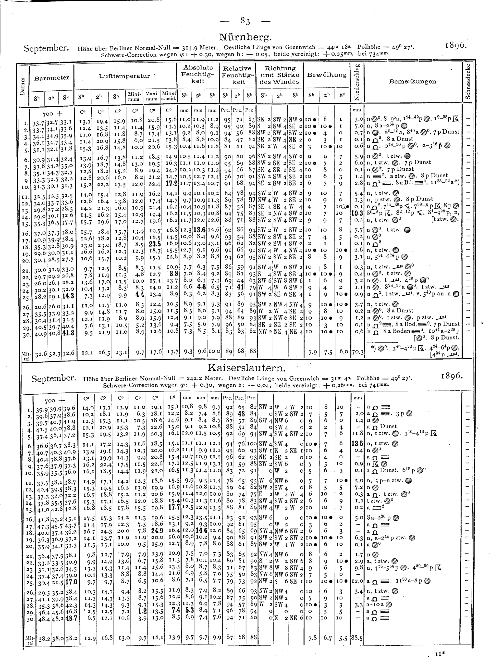 Tägliche Beobachtungen der Stationen II. Ordnung