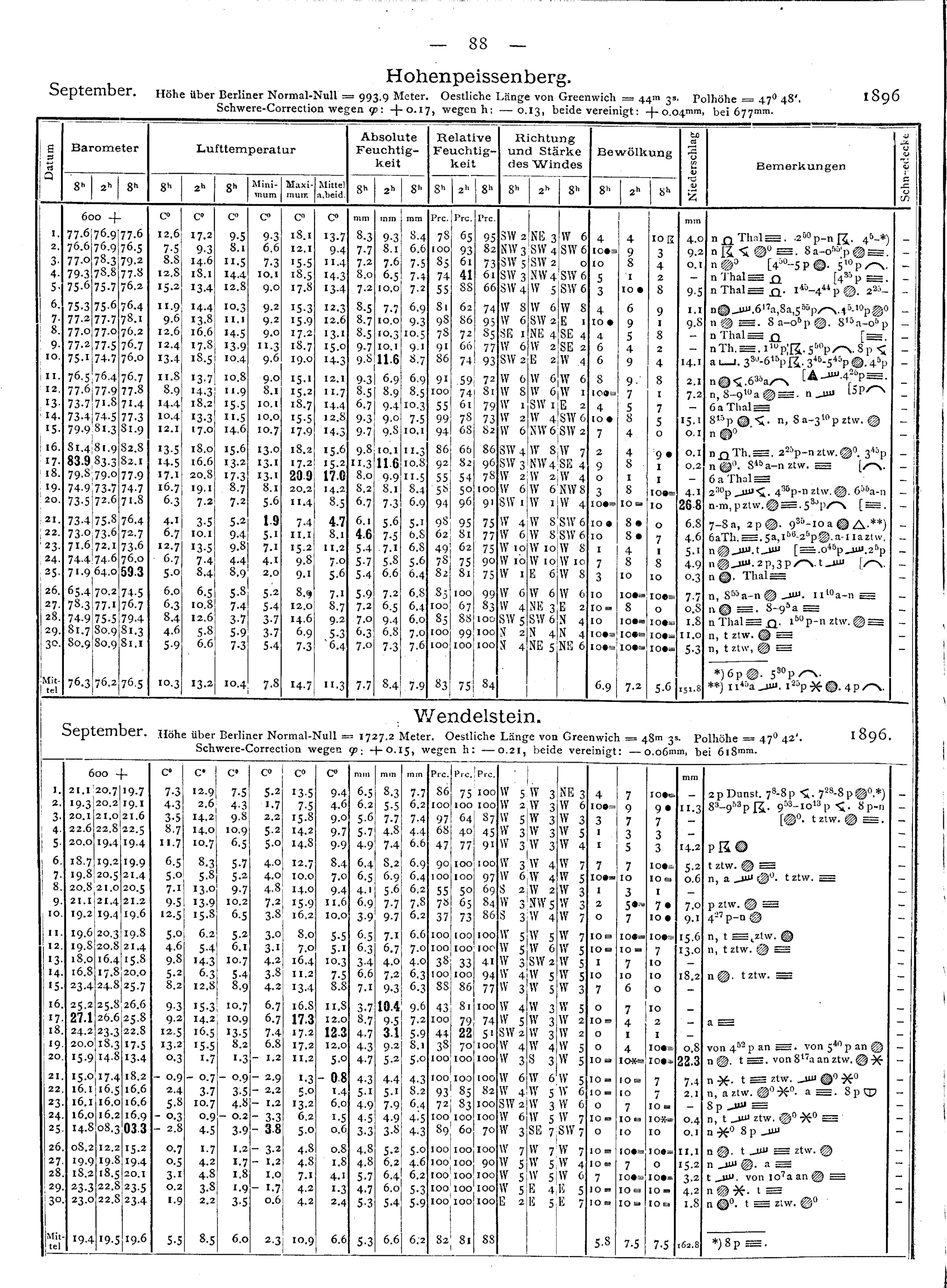 Tägliche Beobachtungen der Stationen II. Ordnung