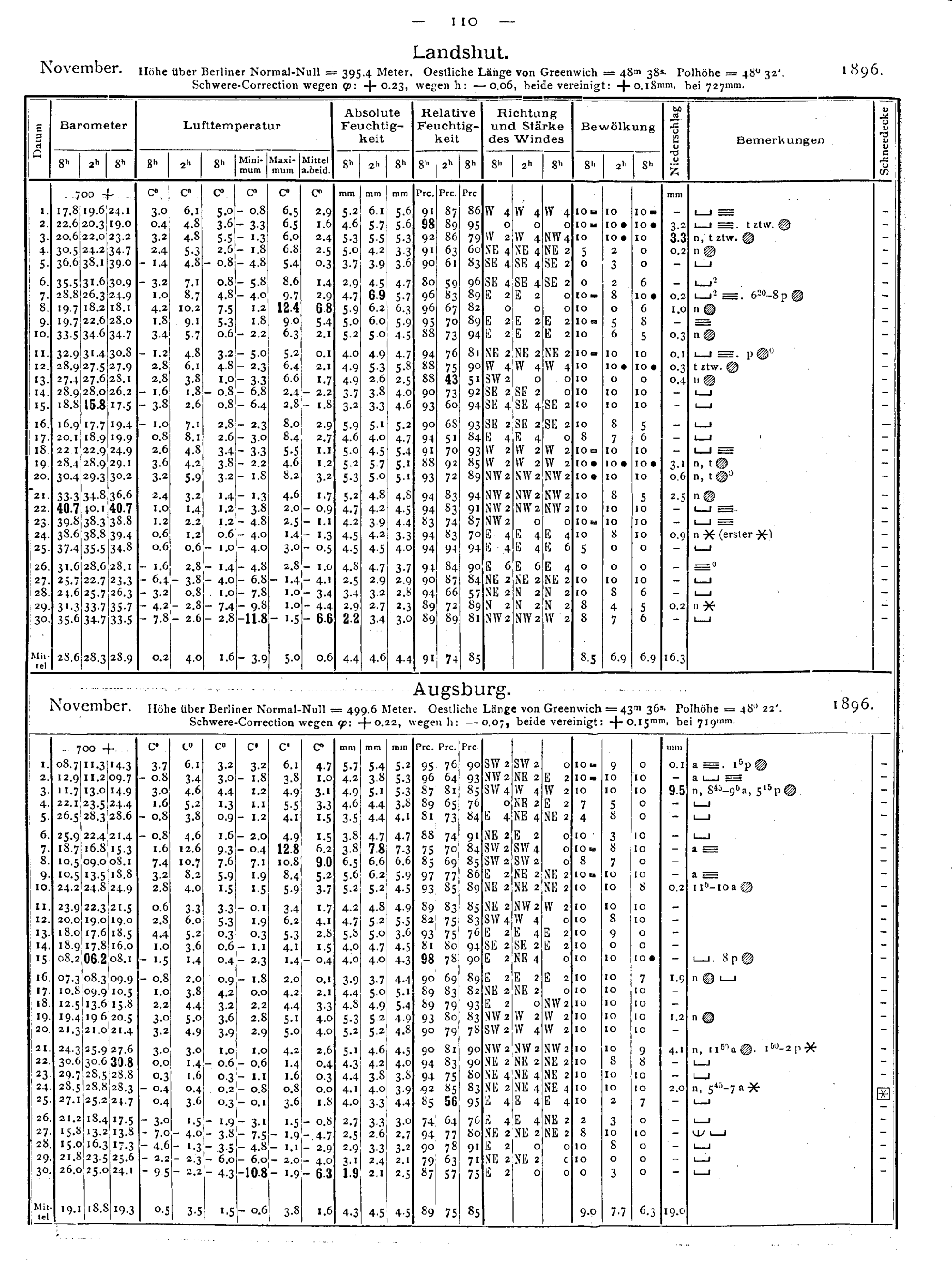 Tägliche Beobachtungen der Stationen II. Ordnung