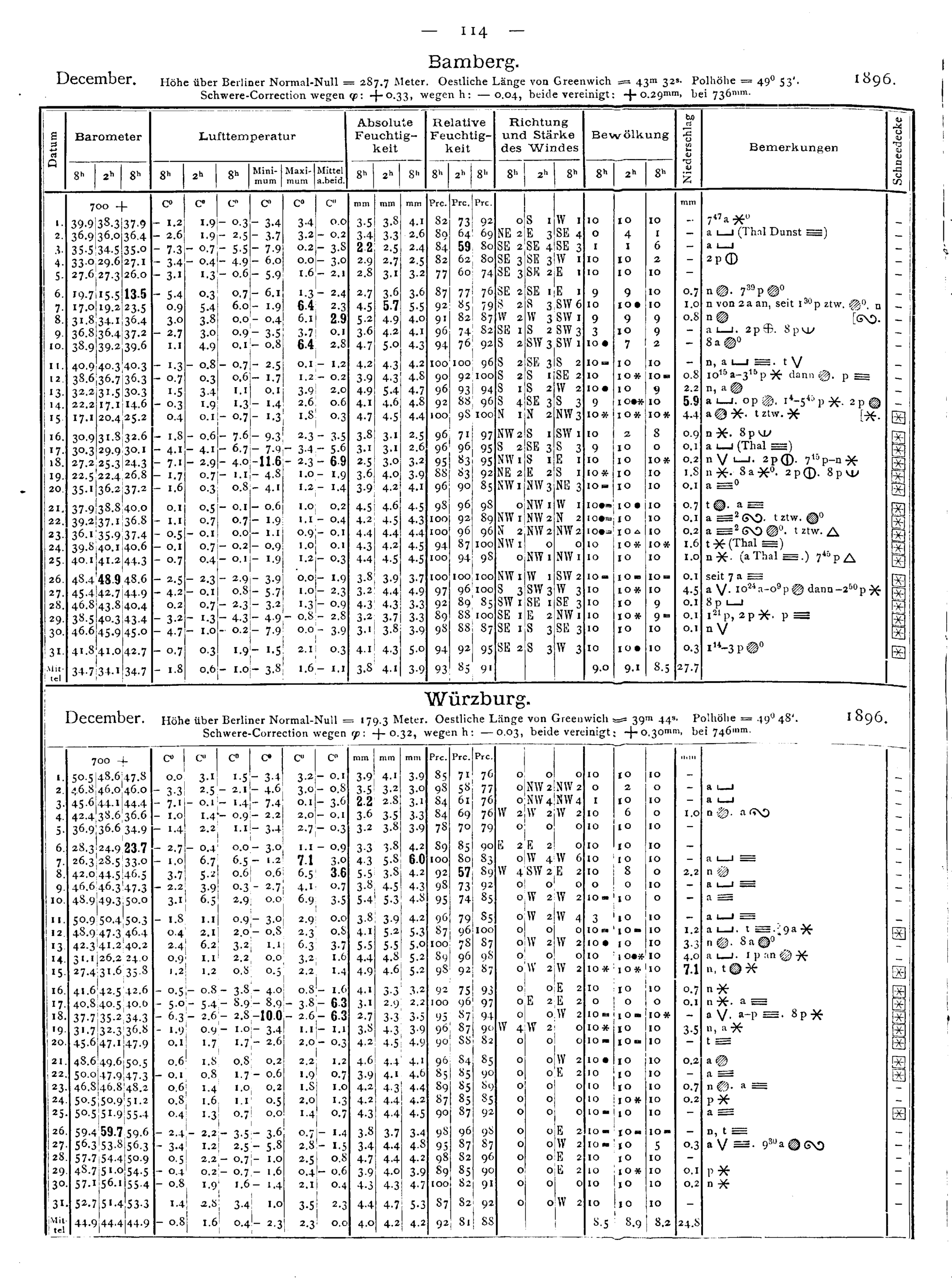 Tägliche Beobachtungen der Stationen II. Ordnung