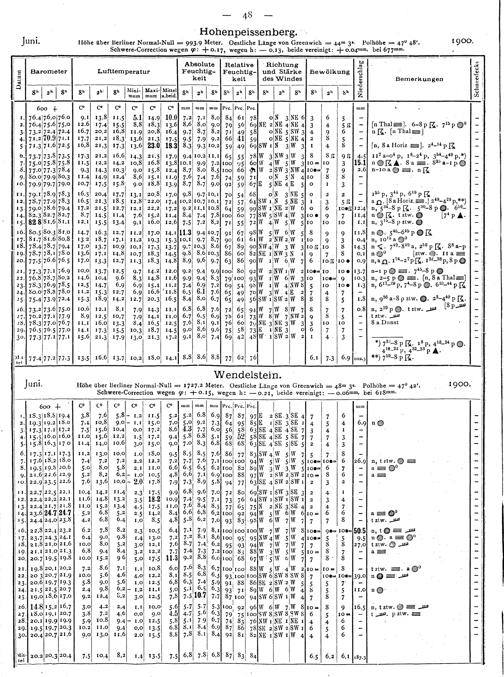 Tägliche Beobachtungen der Stationen II. Ordnung