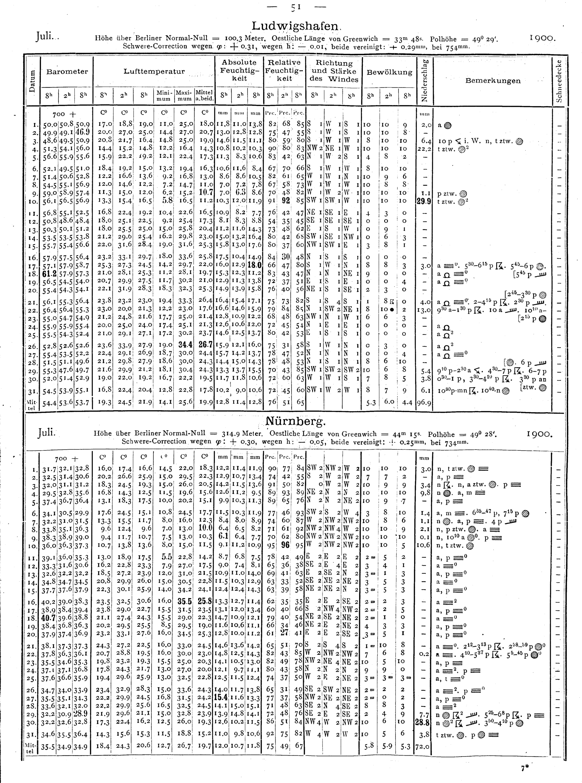Tägliche Beobachtungen der Stationen II. Ordnung