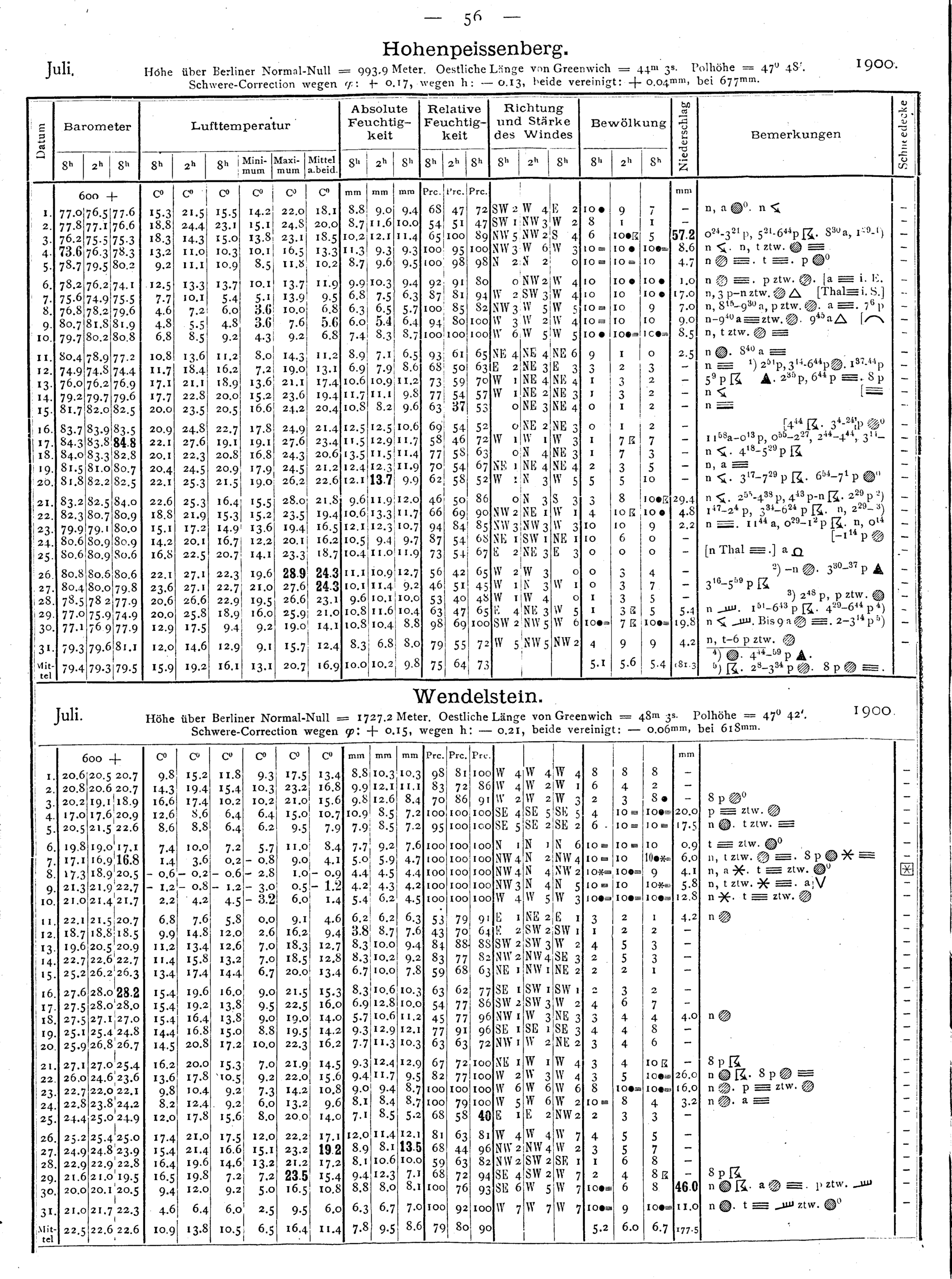 Tägliche Beobachtungen der Stationen II. Ordnung