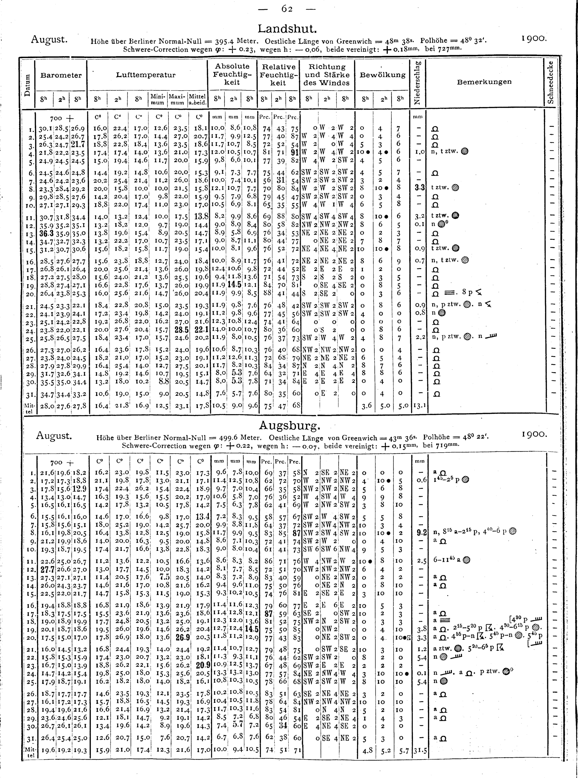 Tägliche Beobachtungen der Stationen II. Ordnung