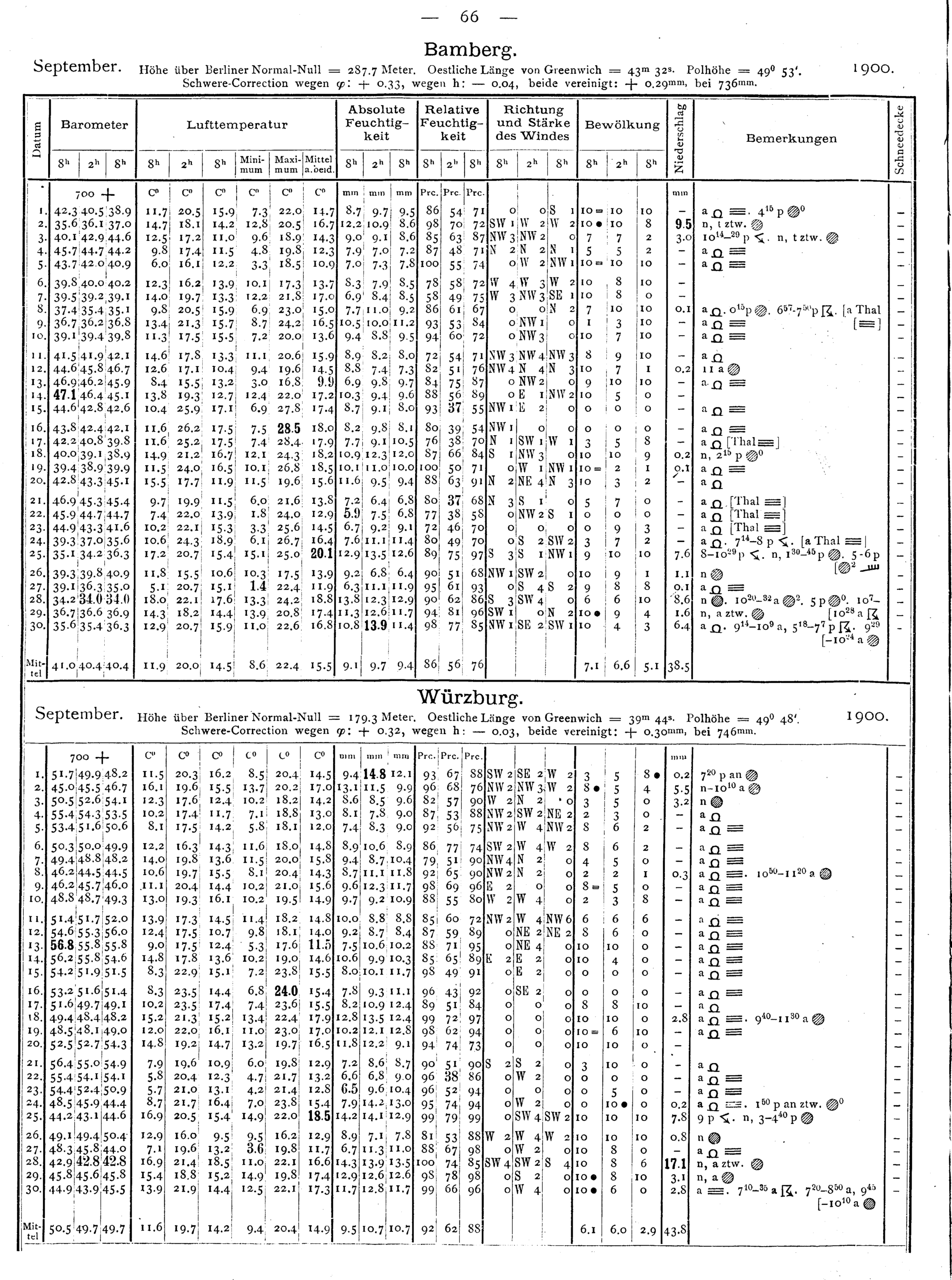 Tägliche Beobachtungen der Stationen II. Ordnung