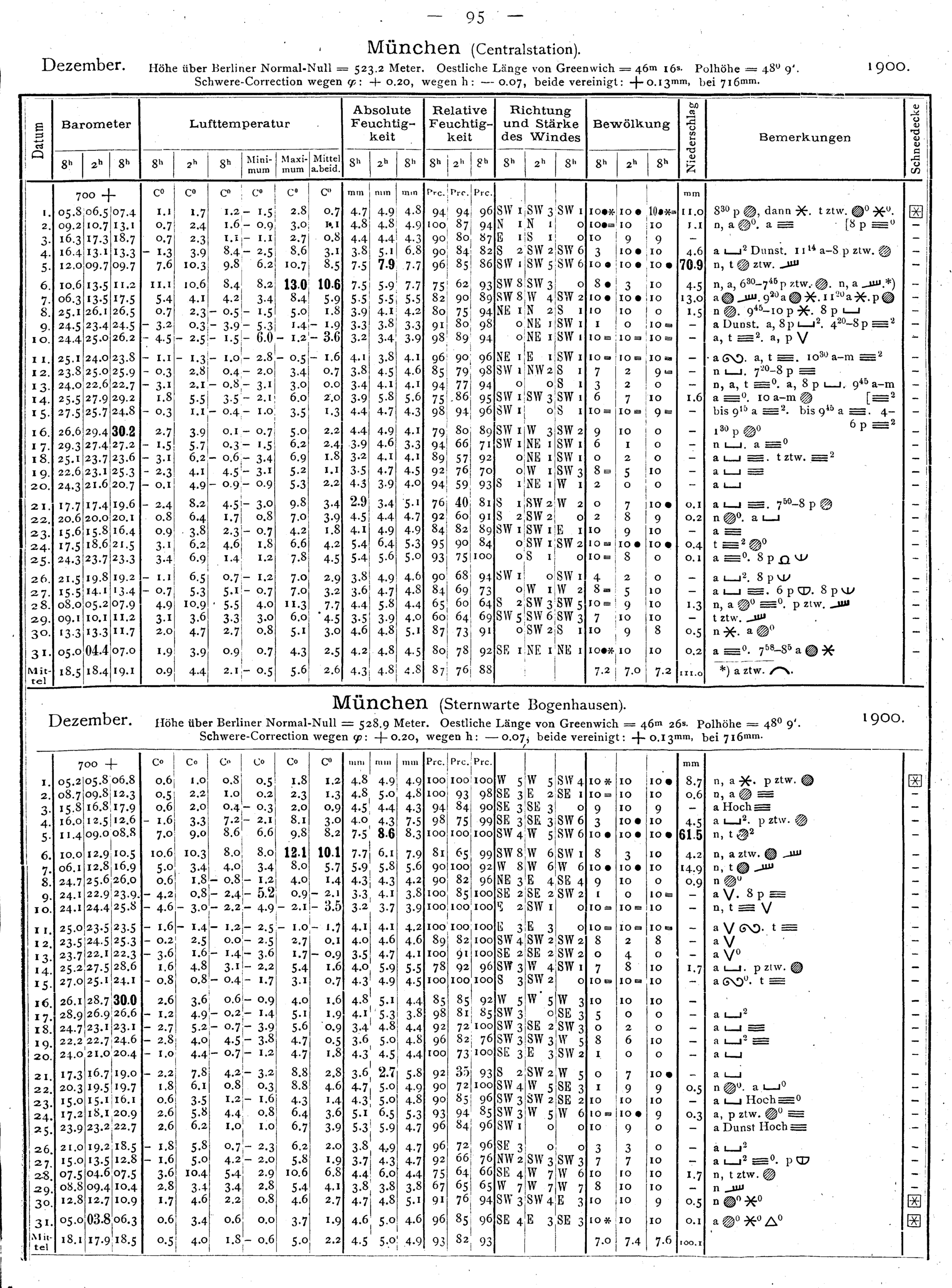 Tägliche Beobachtungen der Stationen II. Ordnung
