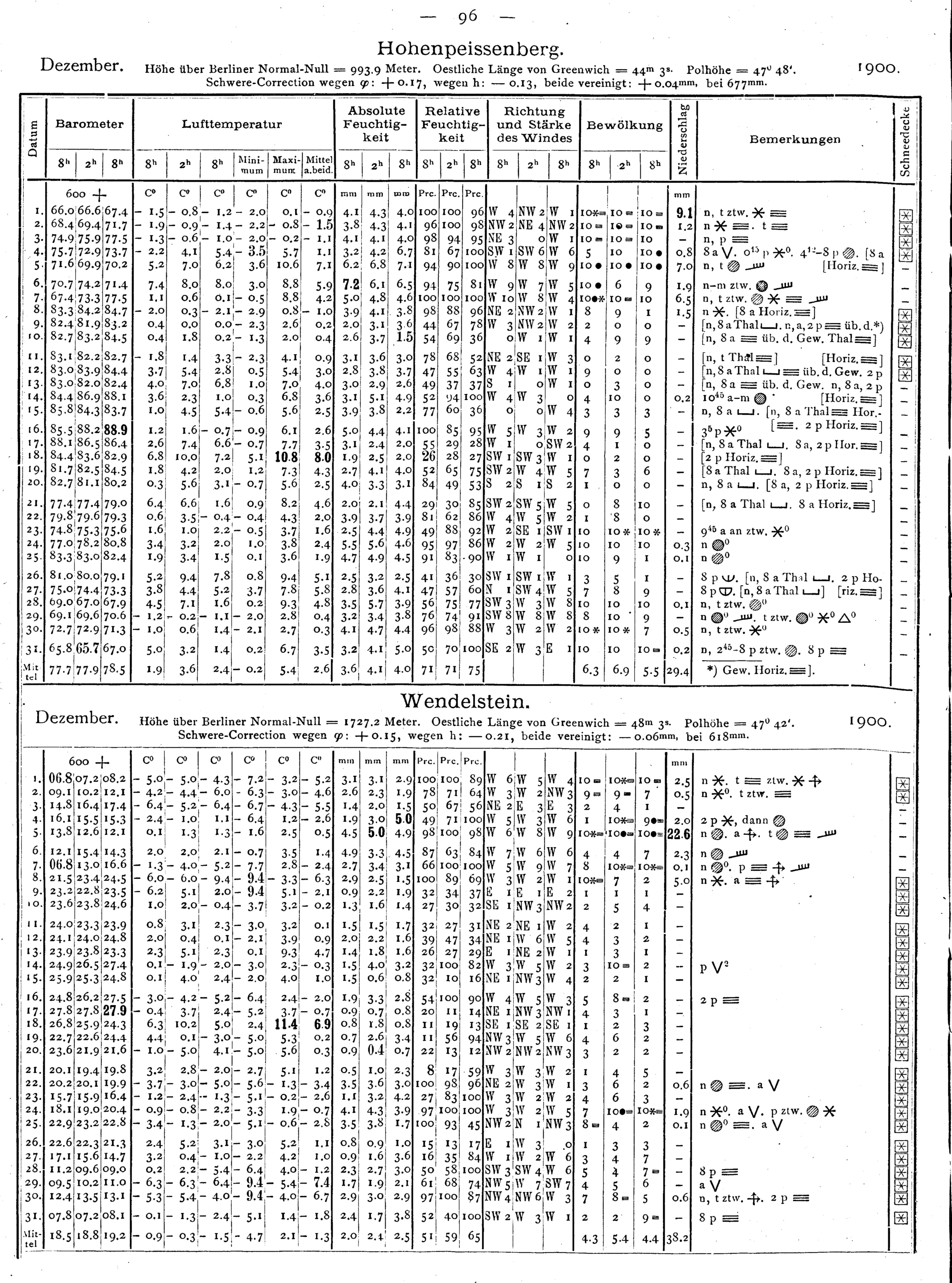 Tägliche Beobachtungen der Stationen II. Ordnung