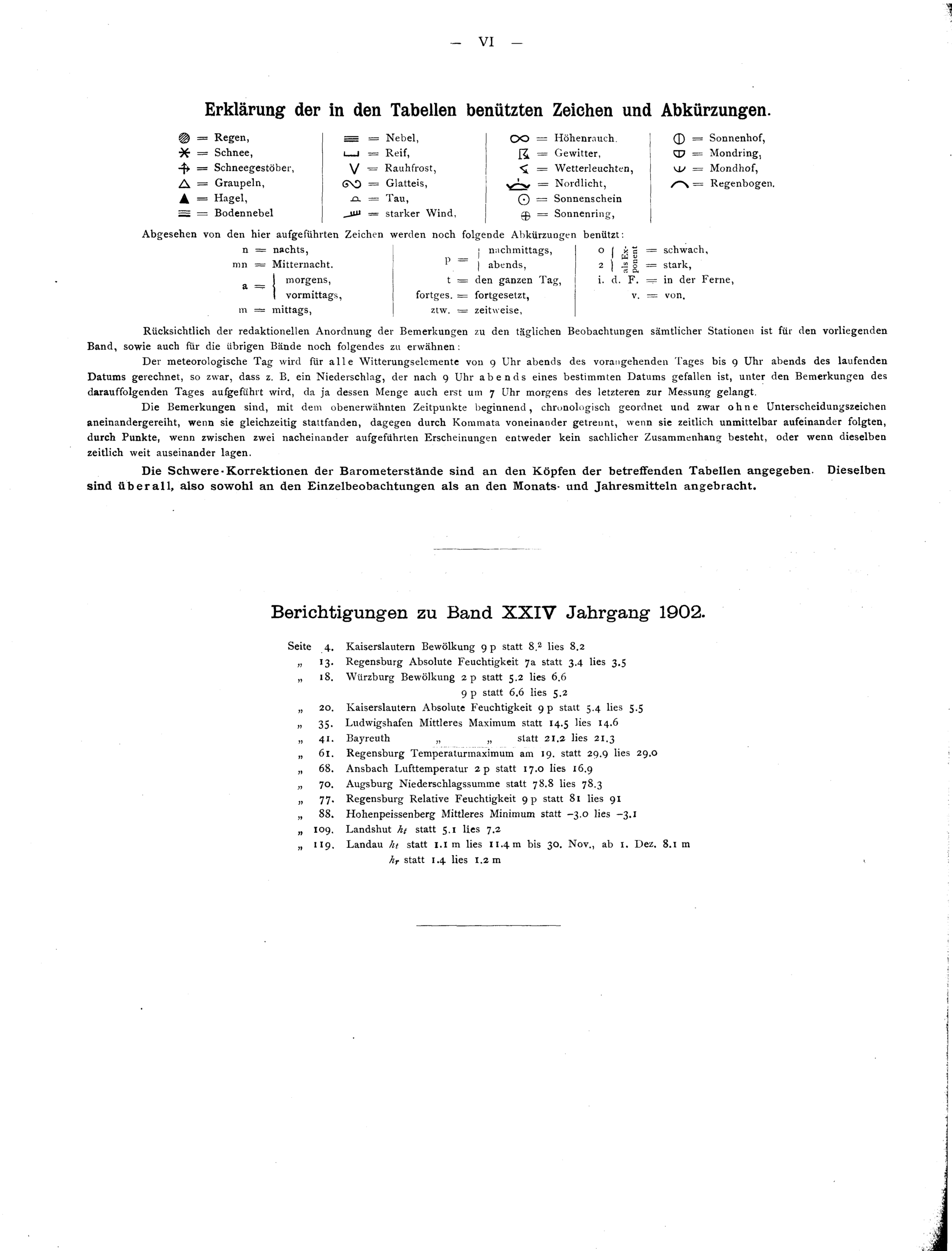 Erklärung der in den Tabellen benützten Zeichen und Abkürzungen und Berichtigung...