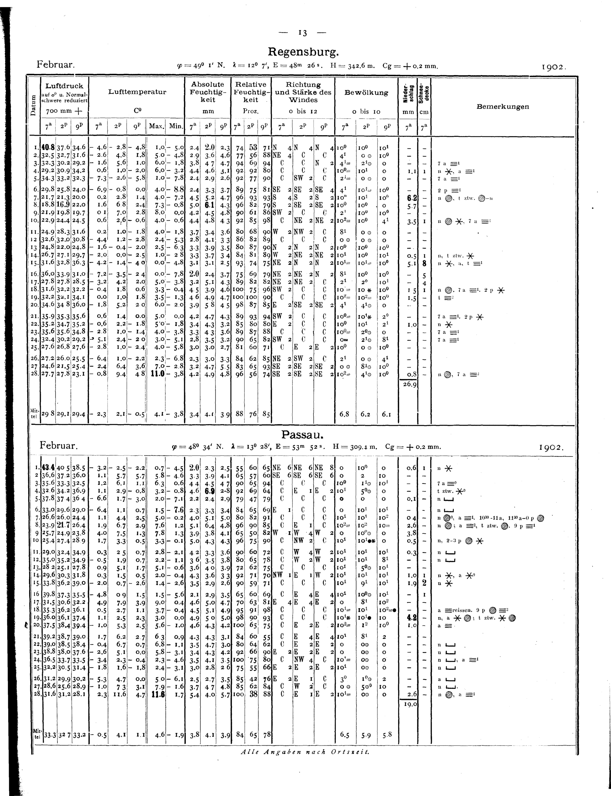 Tägliche Beobachtungen der Stationen II. Ordnung