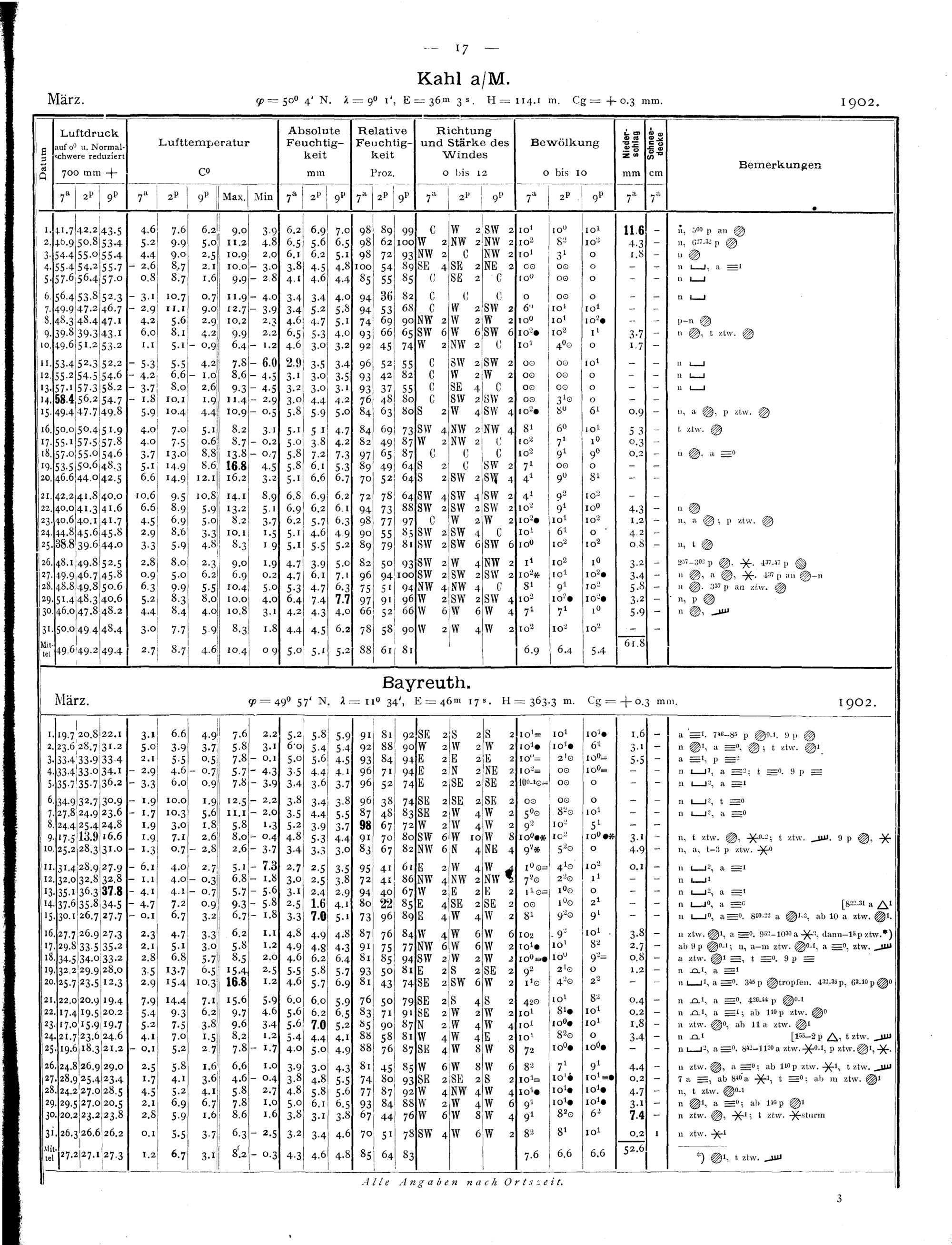 Tägliche Beobachtungen der Stationen II. Ordnung