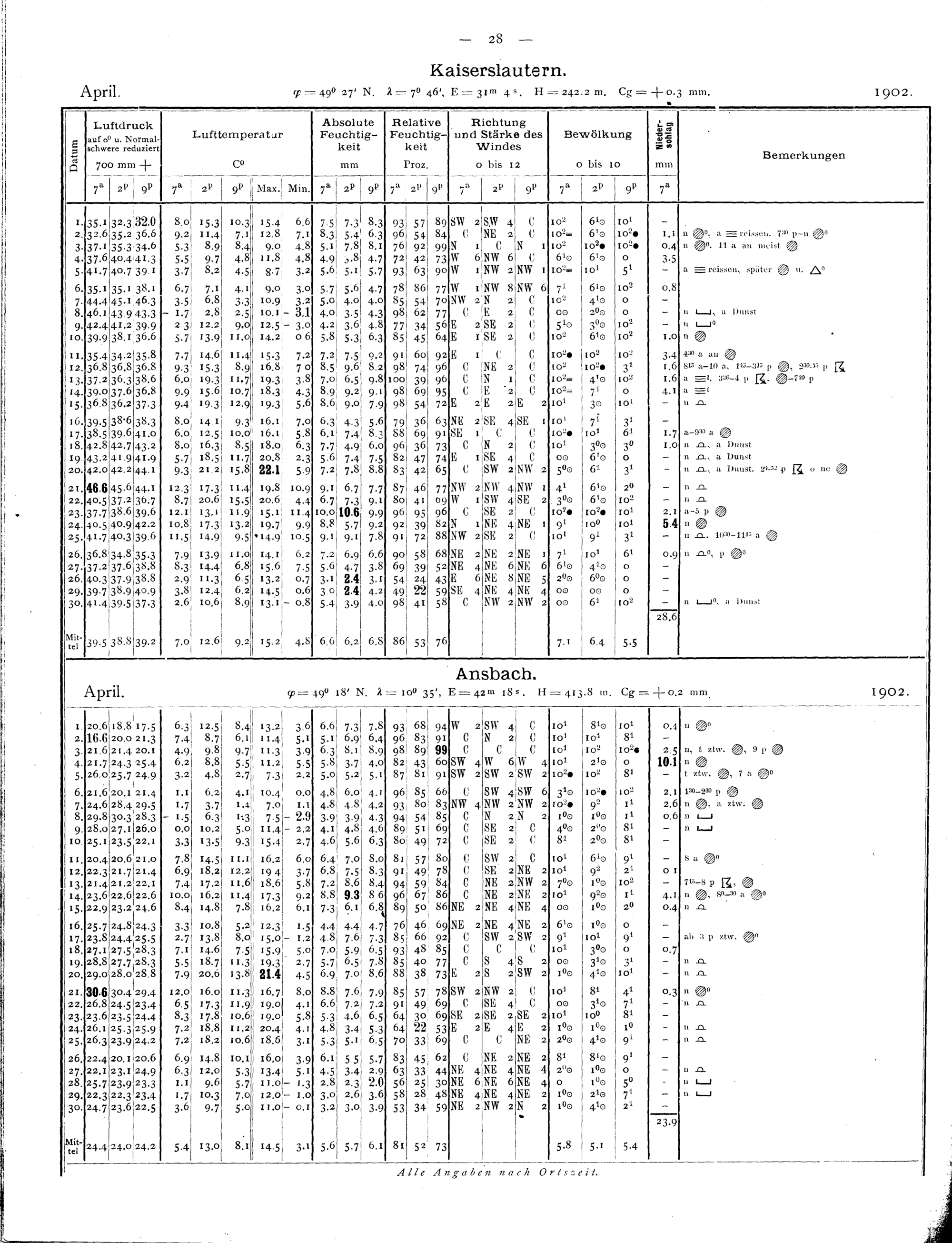 Tägliche Beobachtungen der Stationen II. Ordnung
