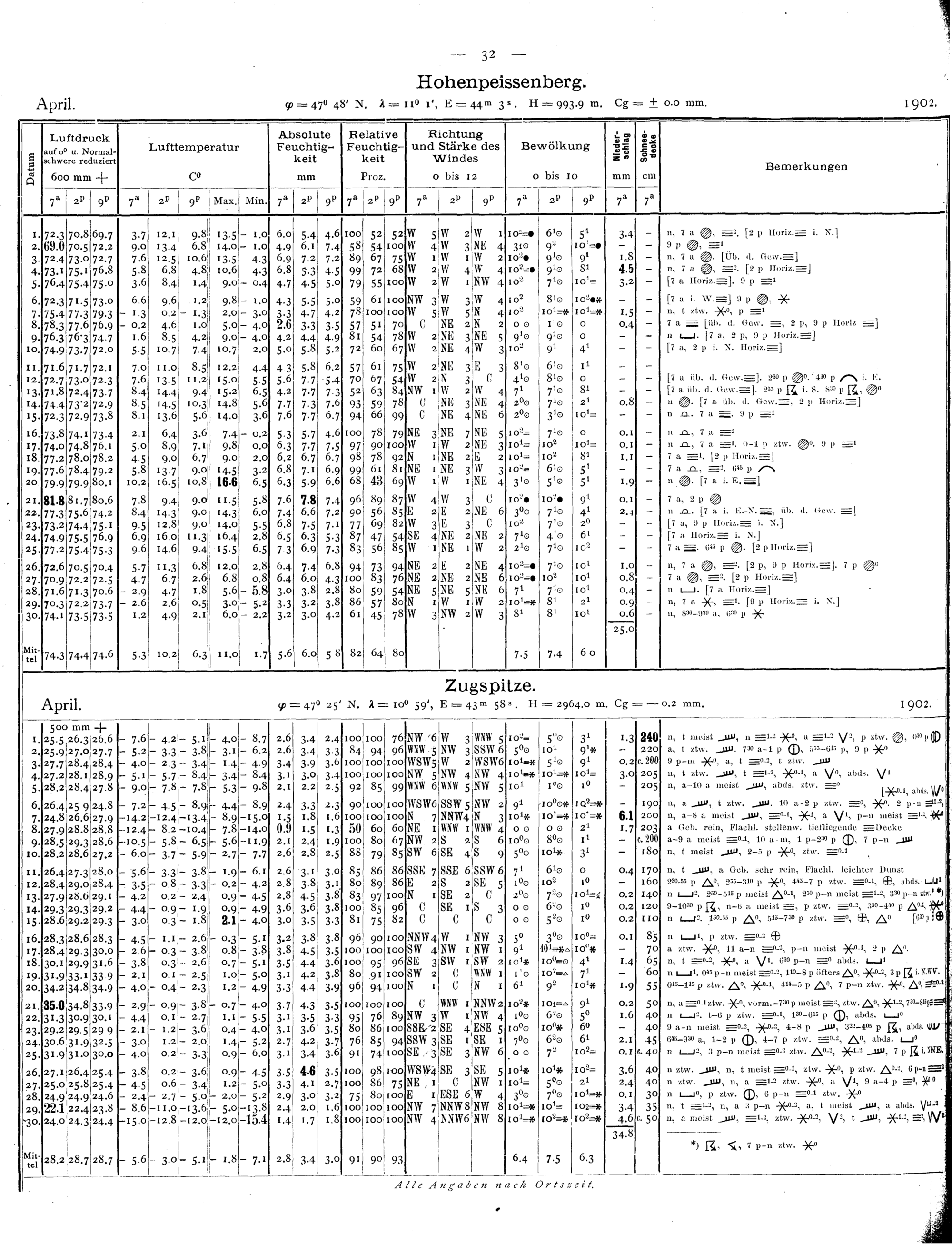 Tägliche Beobachtungen der Stationen II. Ordnung