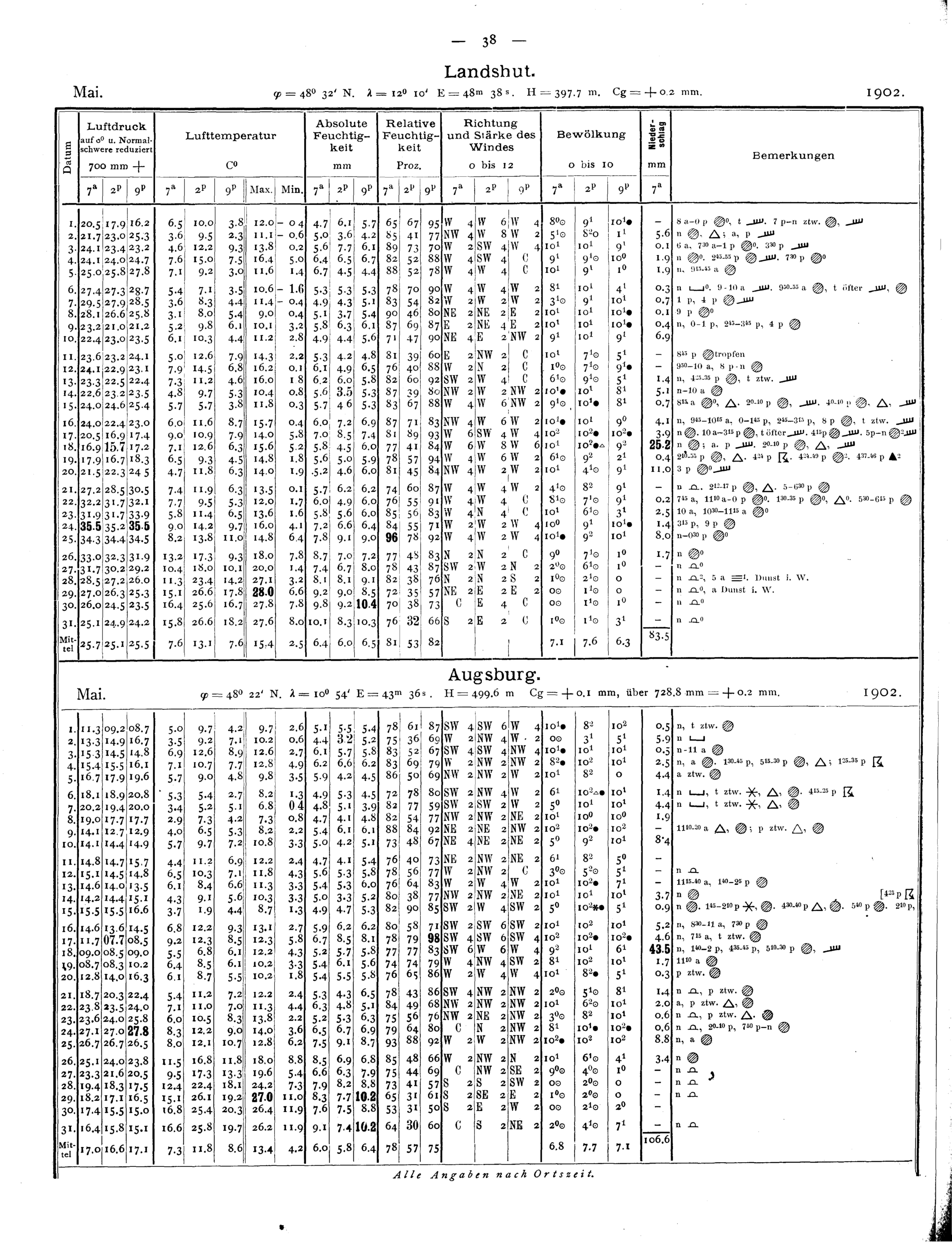Tägliche Beobachtungen der Stationen II. Ordnung