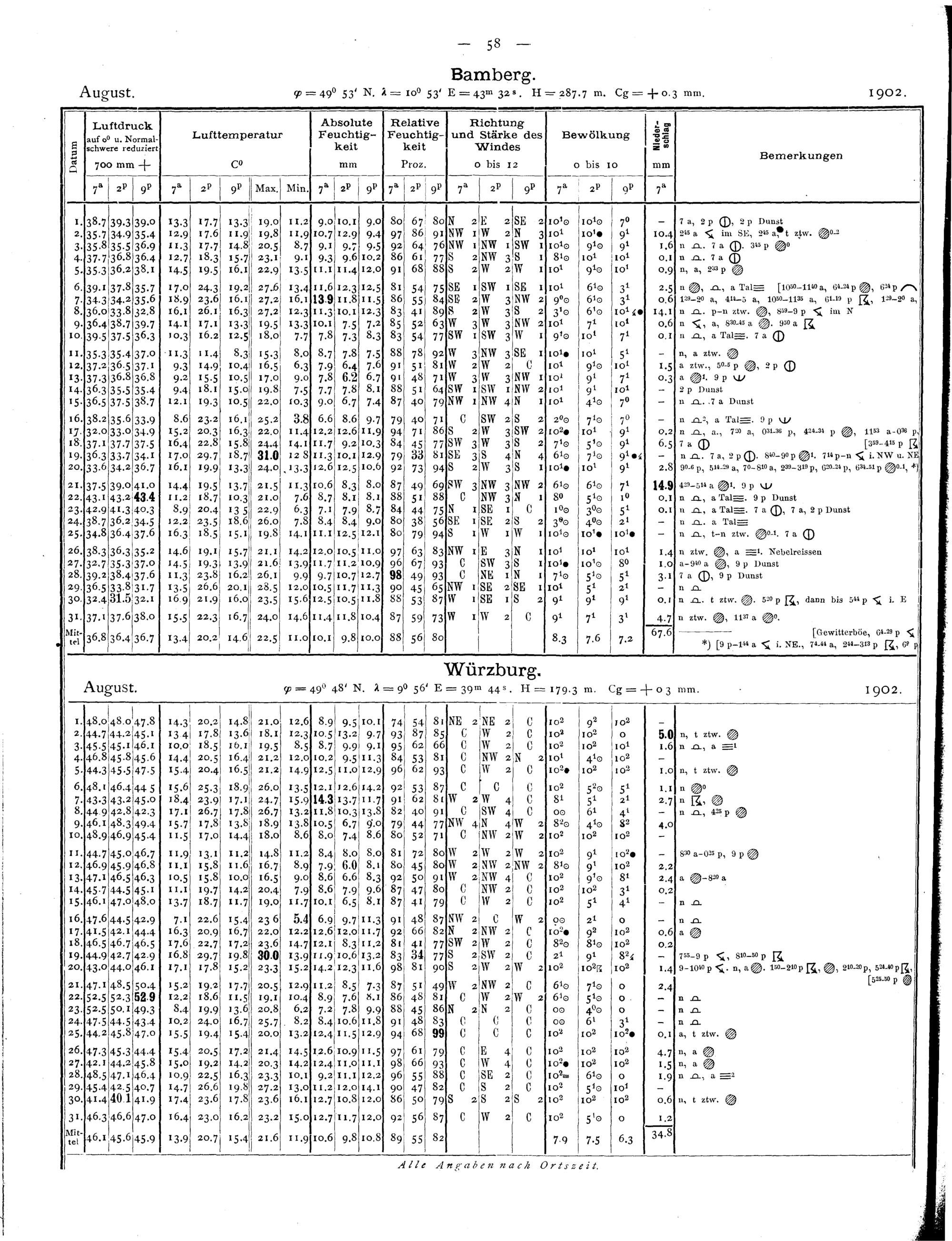 Tägliche Beobachtungen der Stationen II. Ordnung