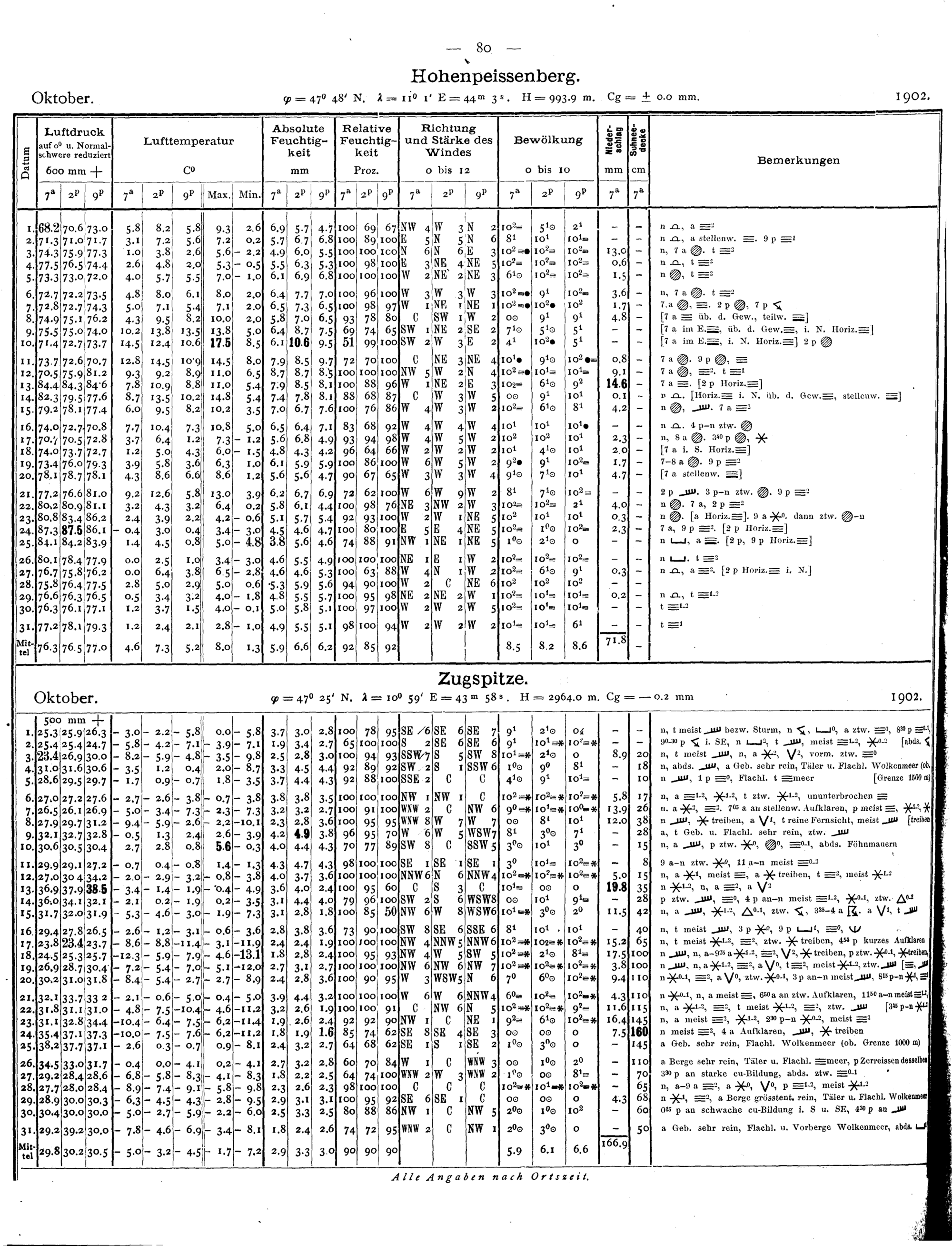 Tägliche Beobachtungen der Stationen II. Ordnung