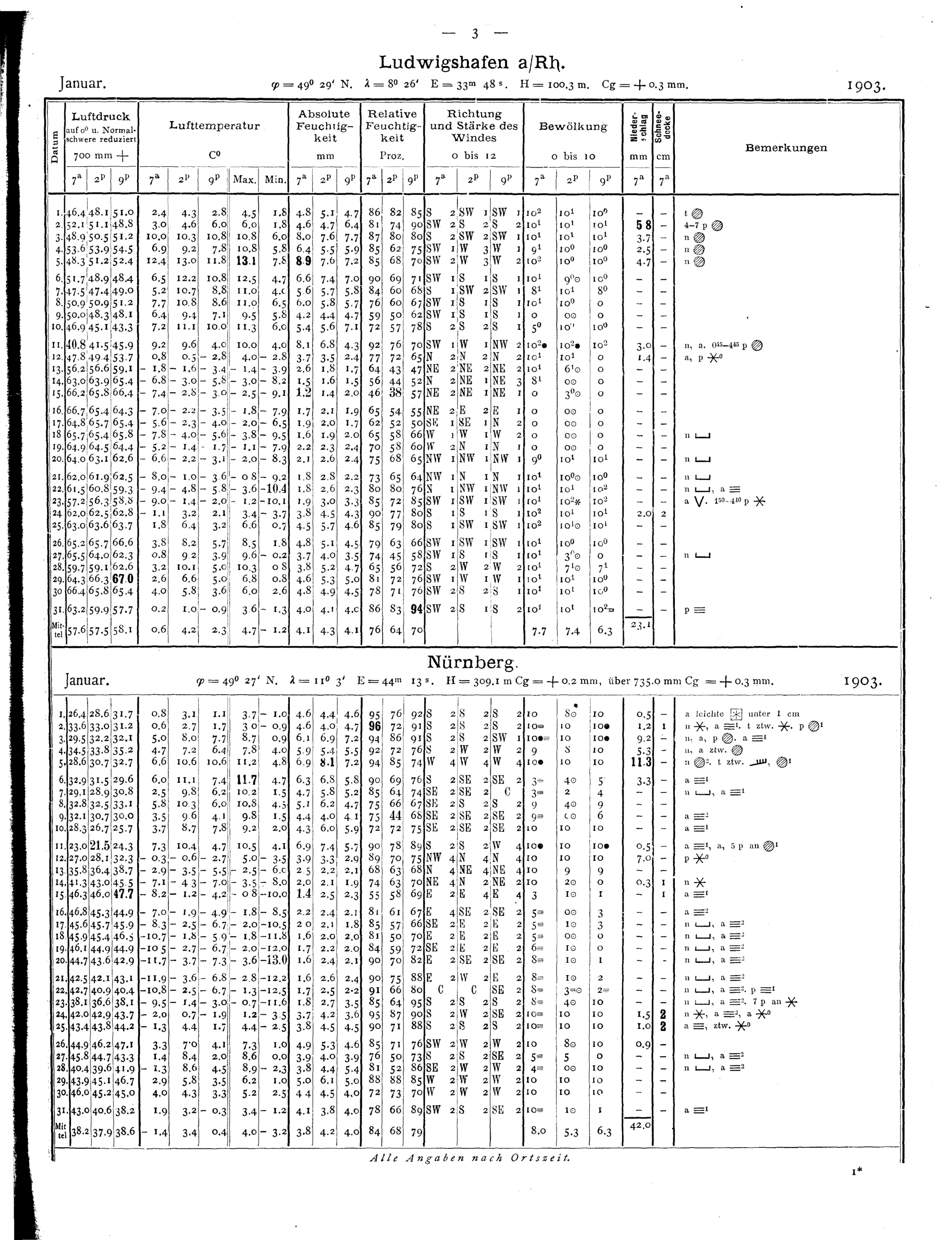 Tägliche Beobachtungen der Stationen II. Ordnung
