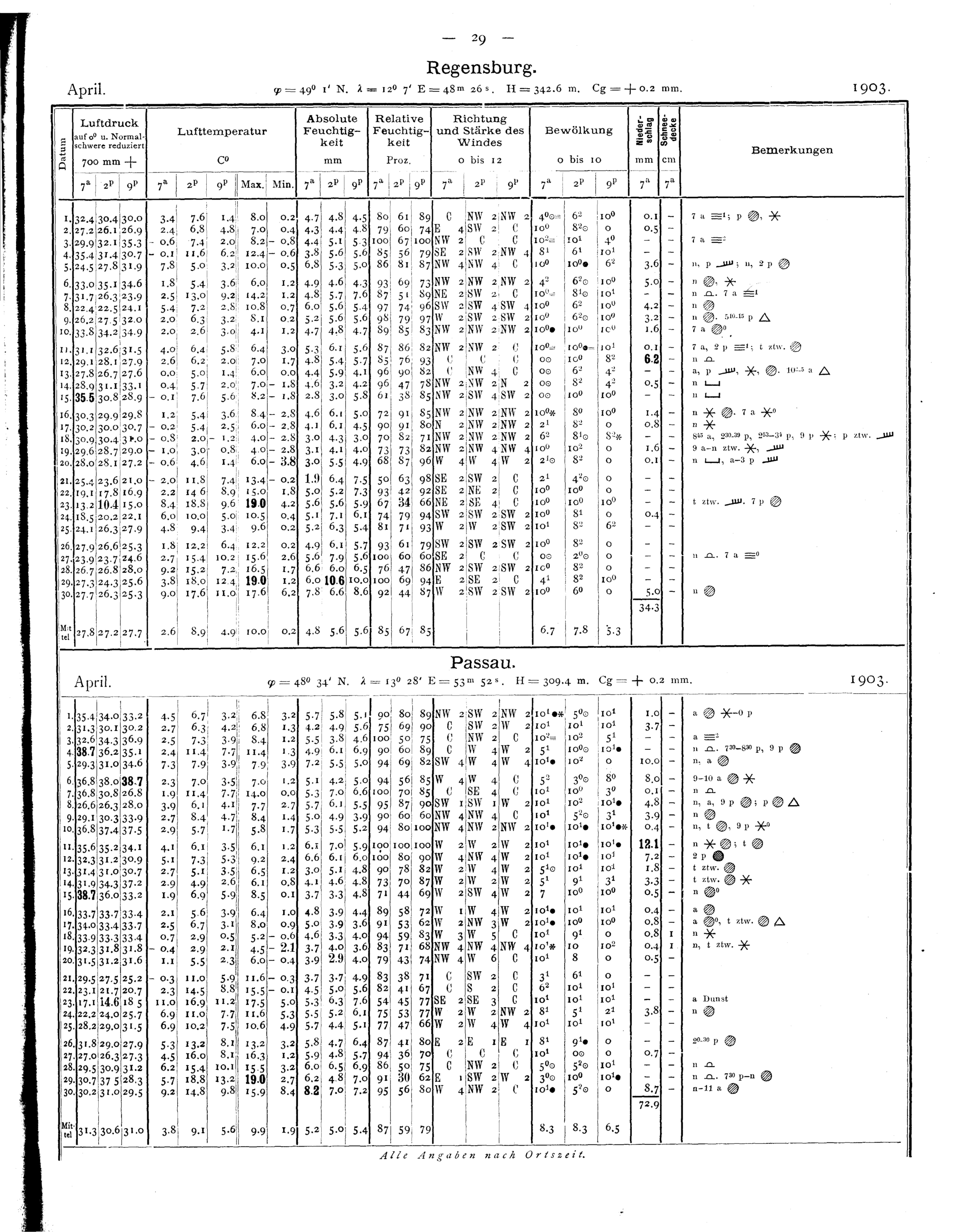 Tägliche Beobachtungen der Stationen II. Ordnung