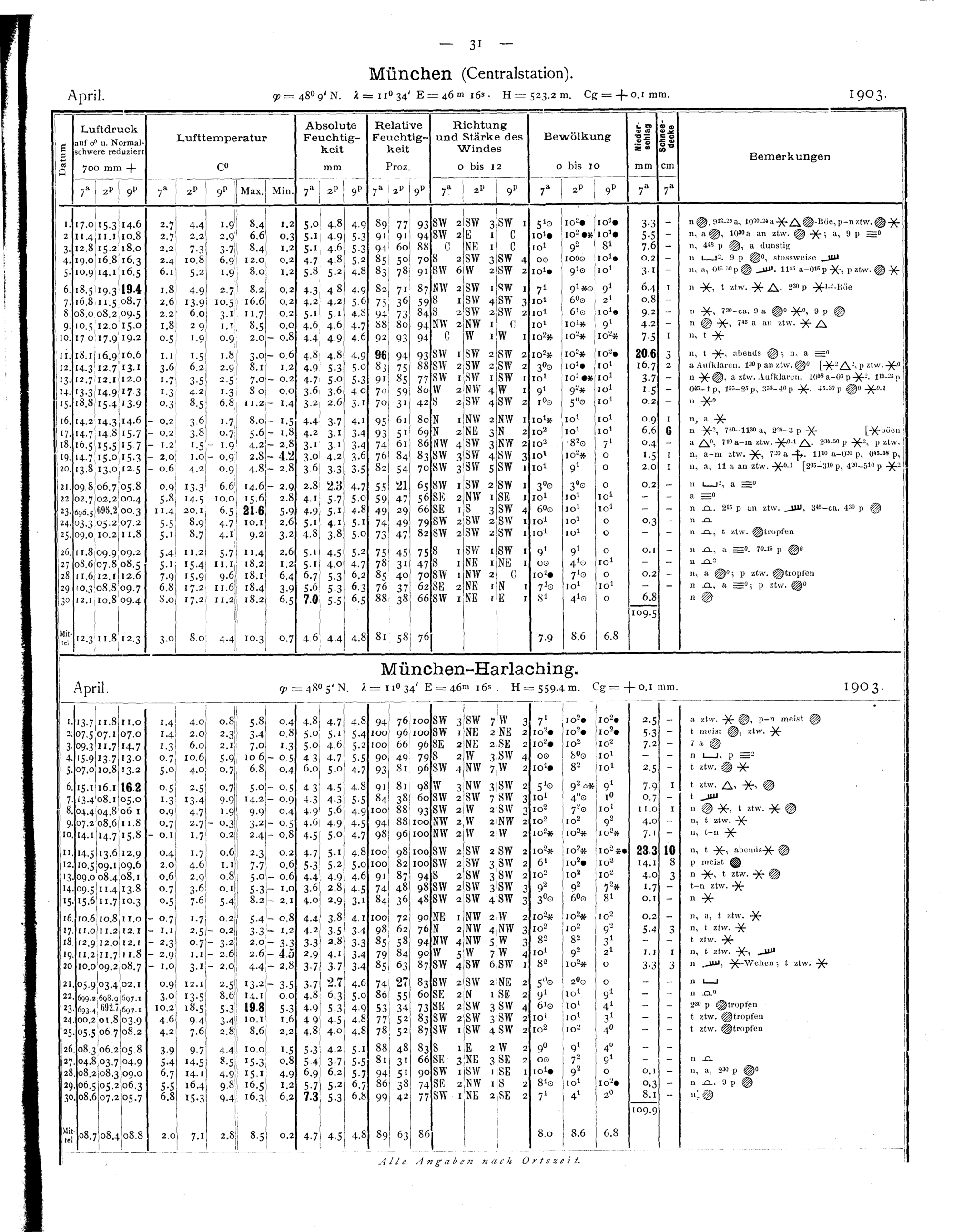 Tägliche Beobachtungen der Stationen II. Ordnung