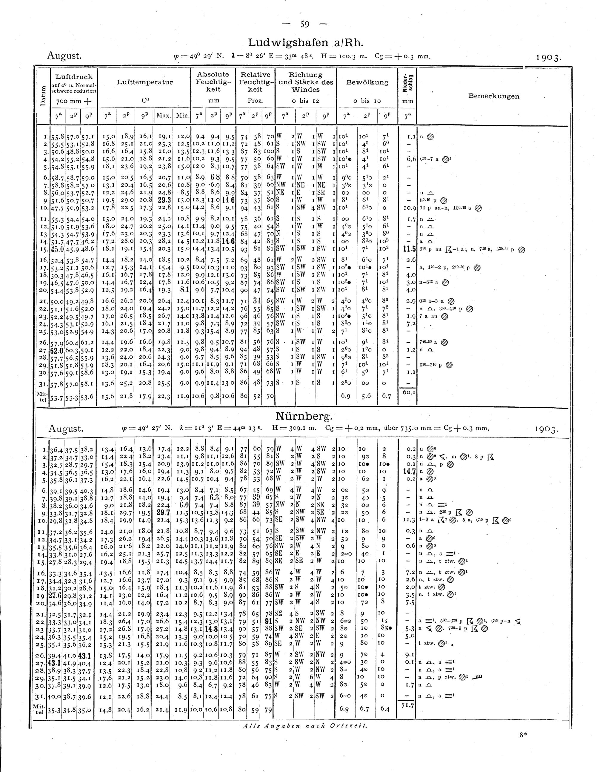 Tägliche Beobachtungen der Stationen II. Ordnung