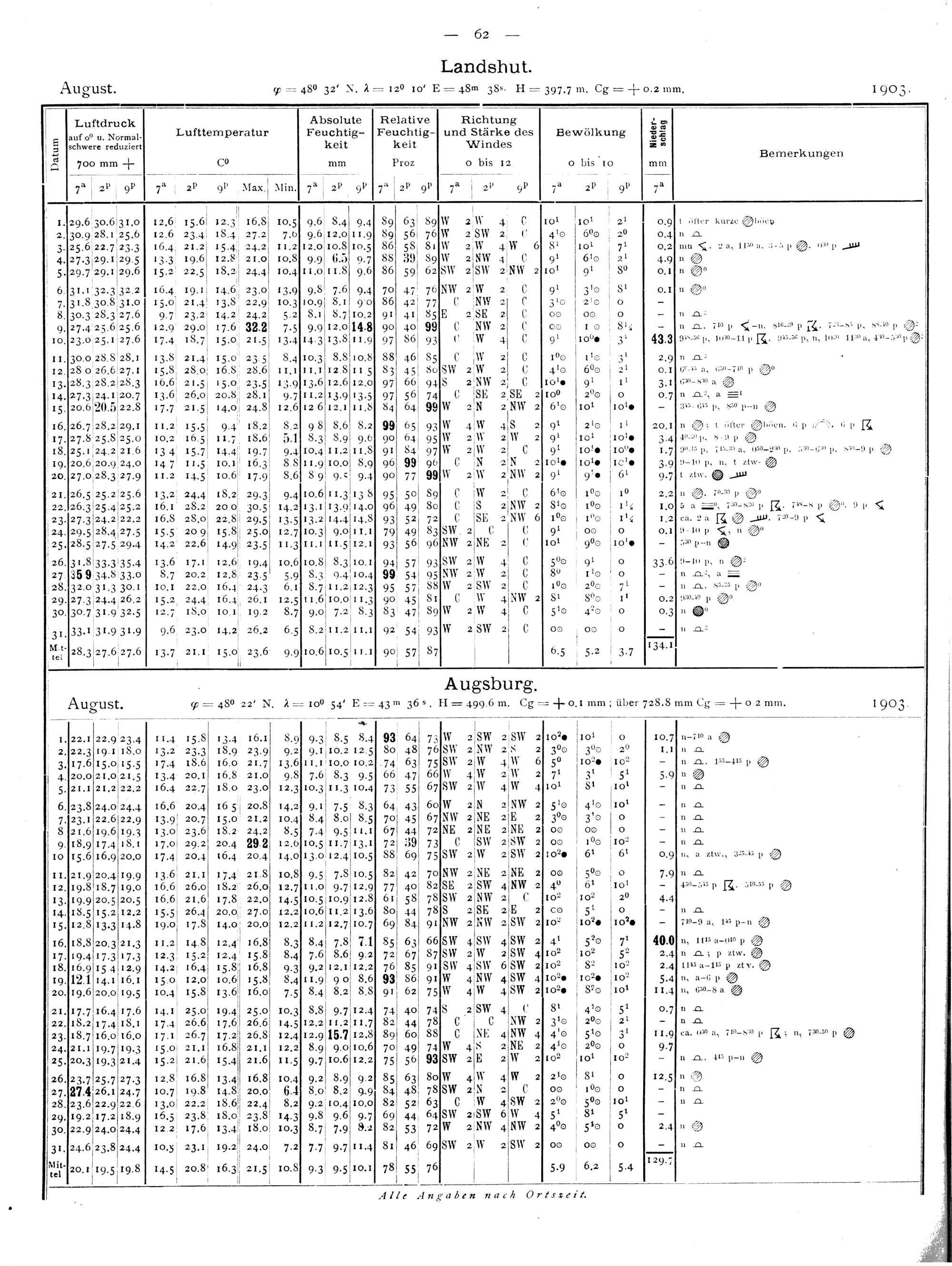 Tägliche Beobachtungen der Stationen II. Ordnung