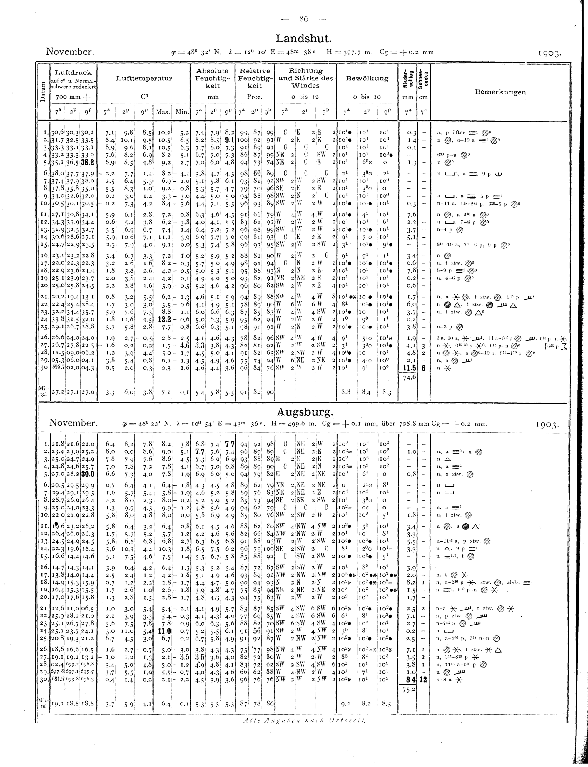 Beobachtungen der meteorologischen Stationen im Königreich Bayern