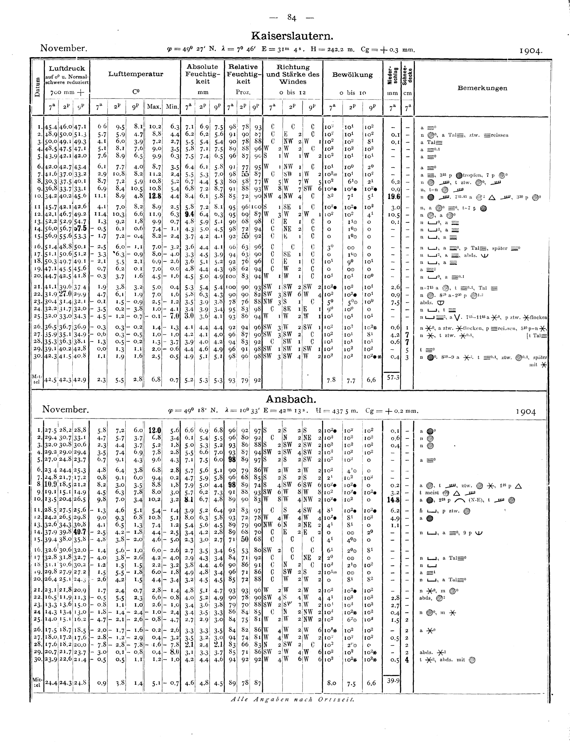 Tägliche Beobachtungen der Stationen II. Ordnung