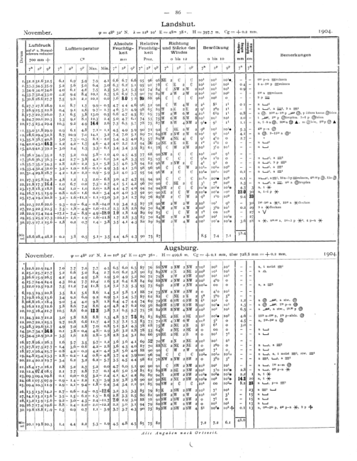Tägliche Beobachtungen der Stationen II. Ordnung