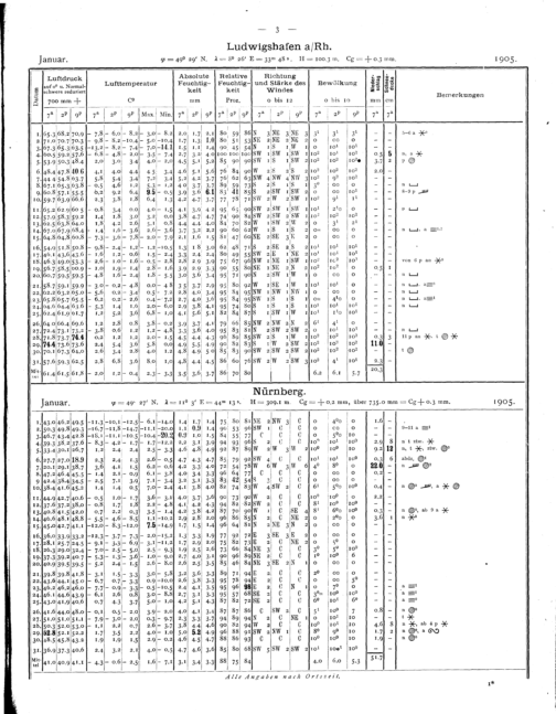 Tägliche Beobachtungen der Stationen II. Ordnung