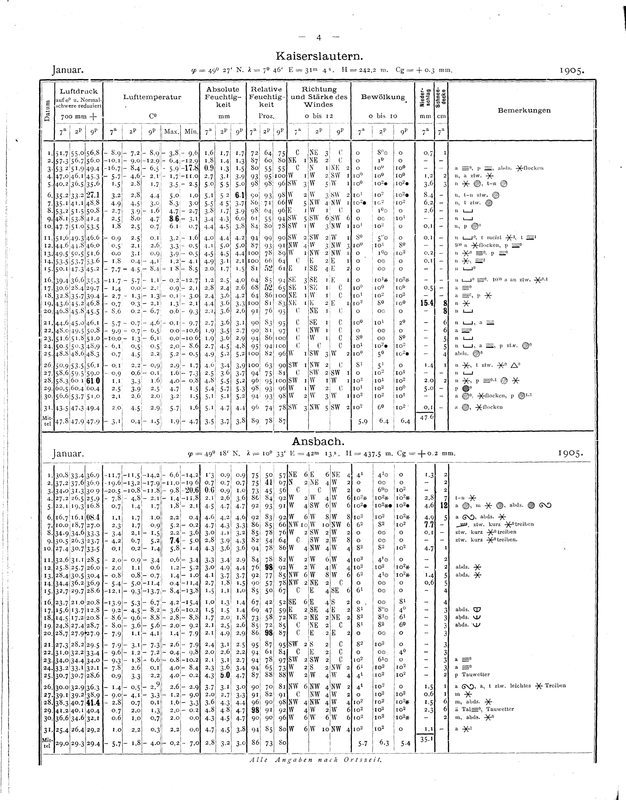 Tägliche Beobachtungen der Stationen II. Ordnung