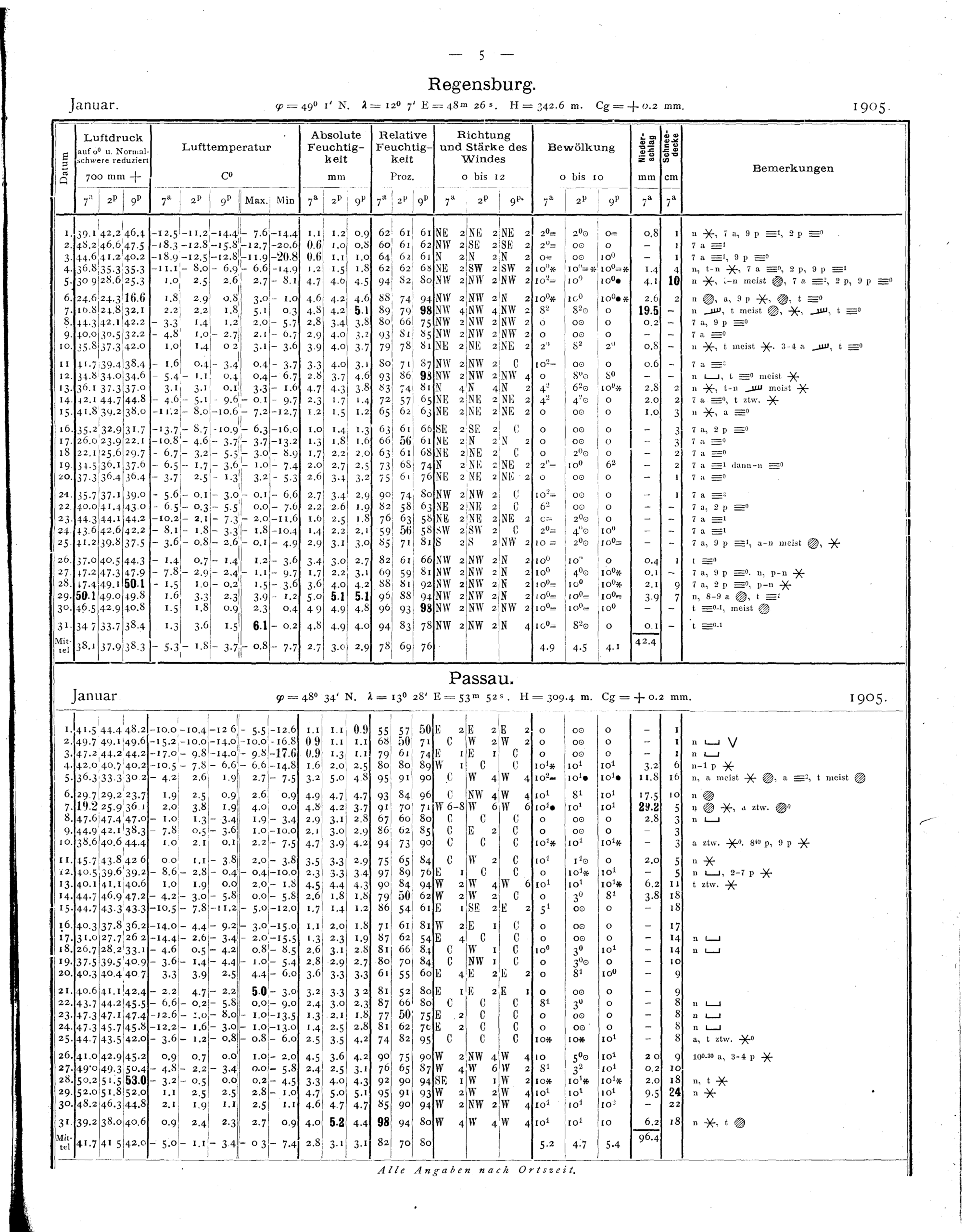 Tägliche Beobachtungen der Stationen II. Ordnung
