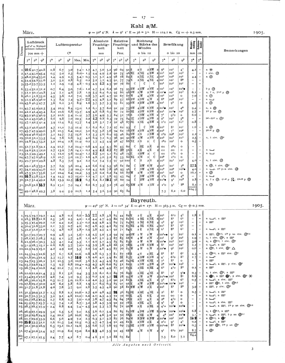 Tägliche Beobachtungen der Stationen II. Ordnung