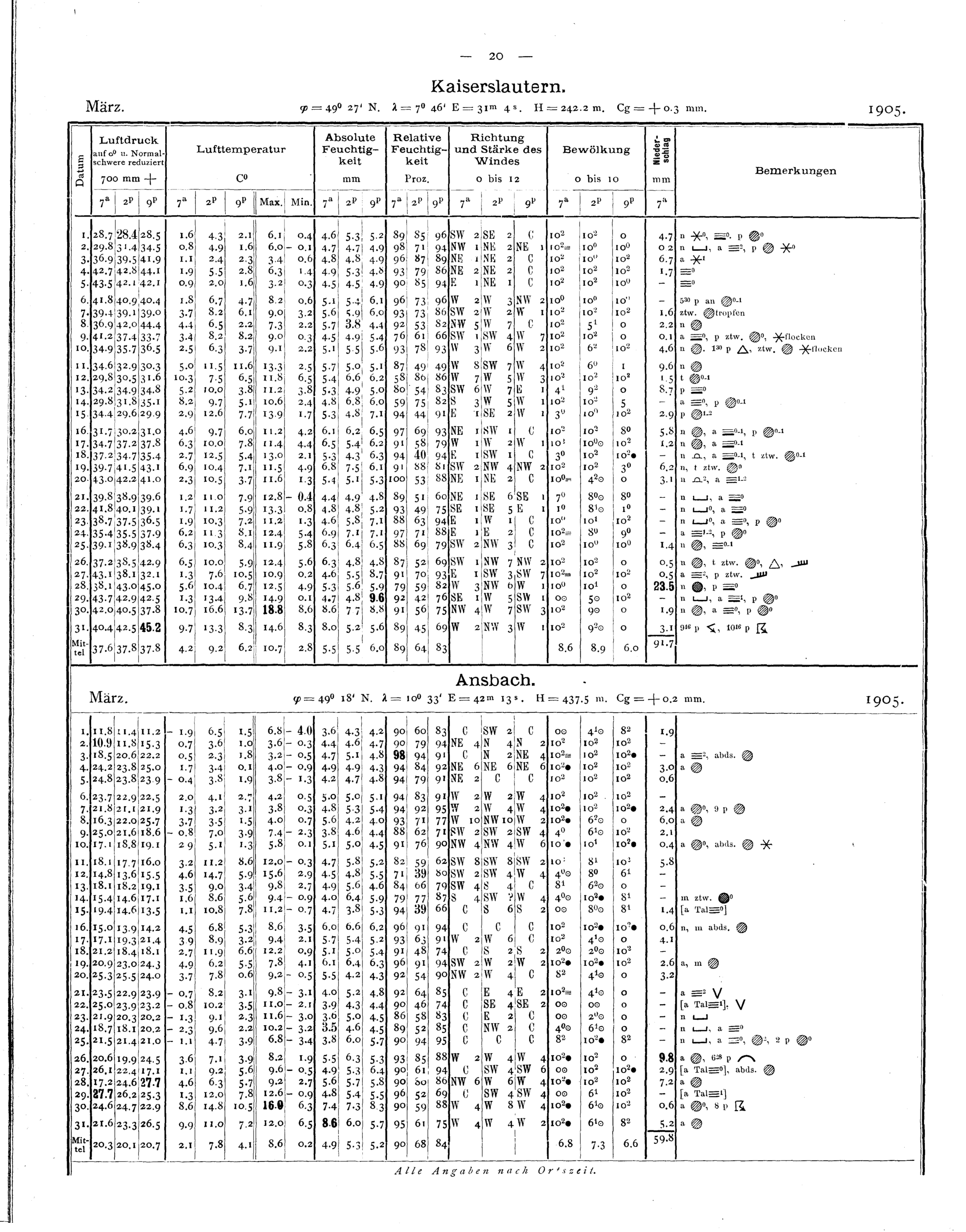 Tägliche Beobachtungen der Stationen II. Ordnung