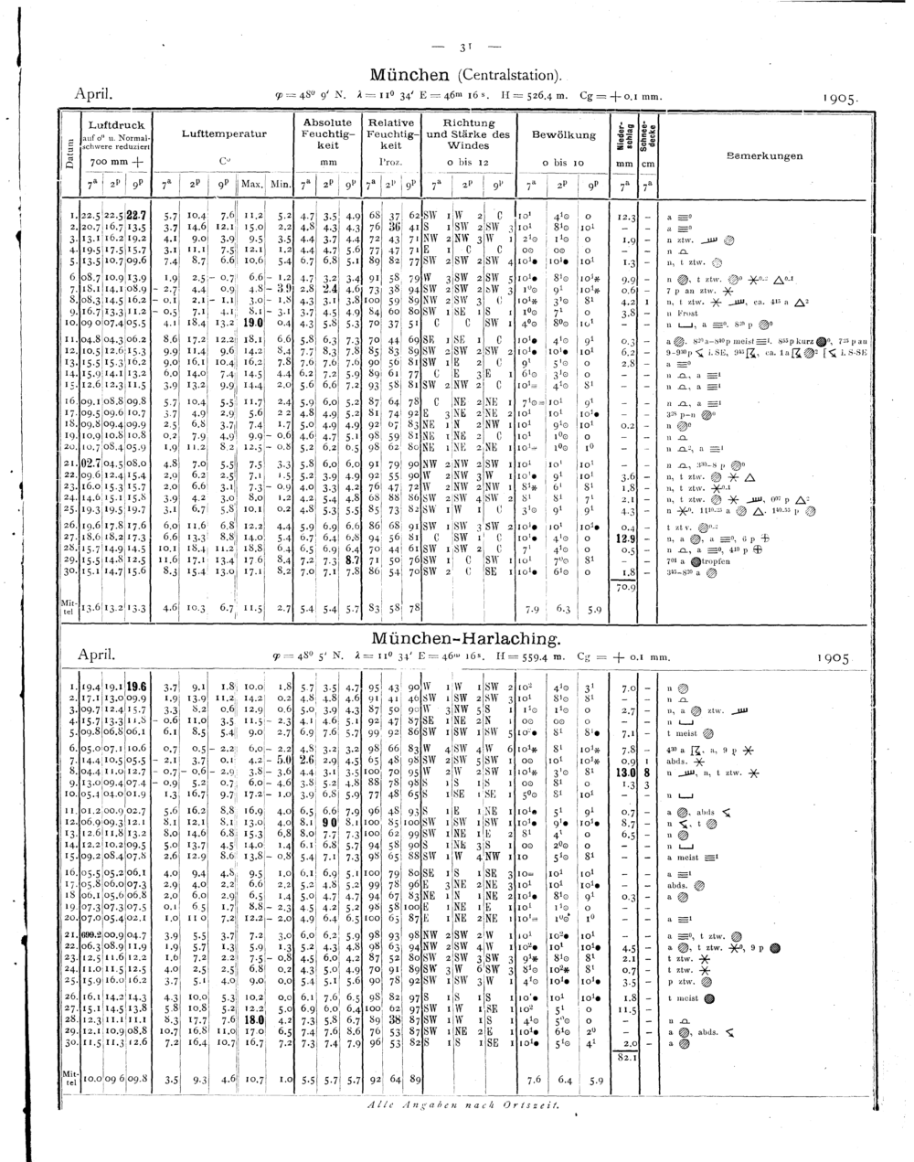 Beobachtungen der meteorologischen Stationen im Königreich Bayern