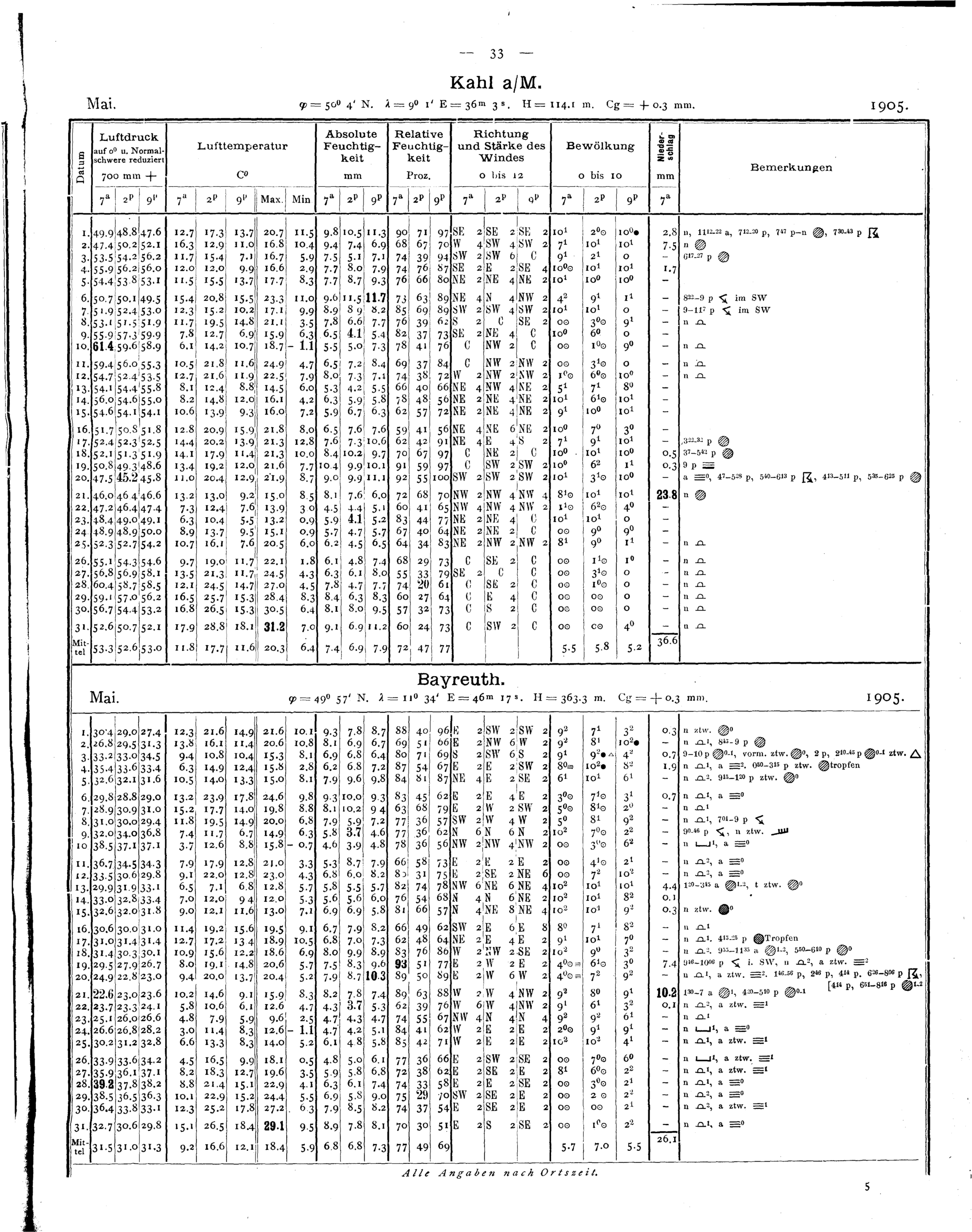 Tägliche Beobachtungen der Stationen II. Ordnung