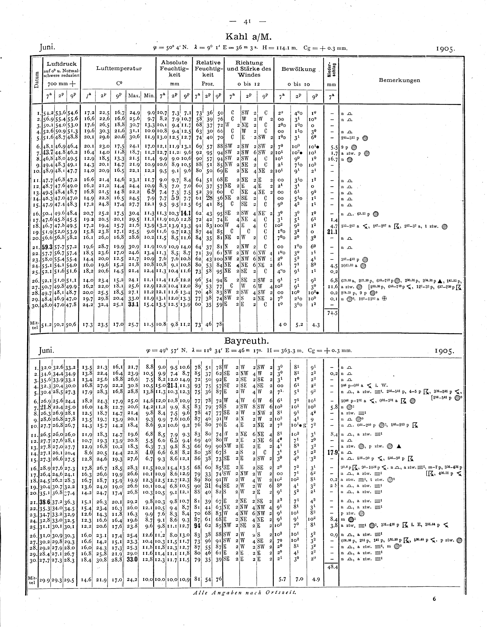 Tägliche Beobachtungen der Stationen II. Ordnung