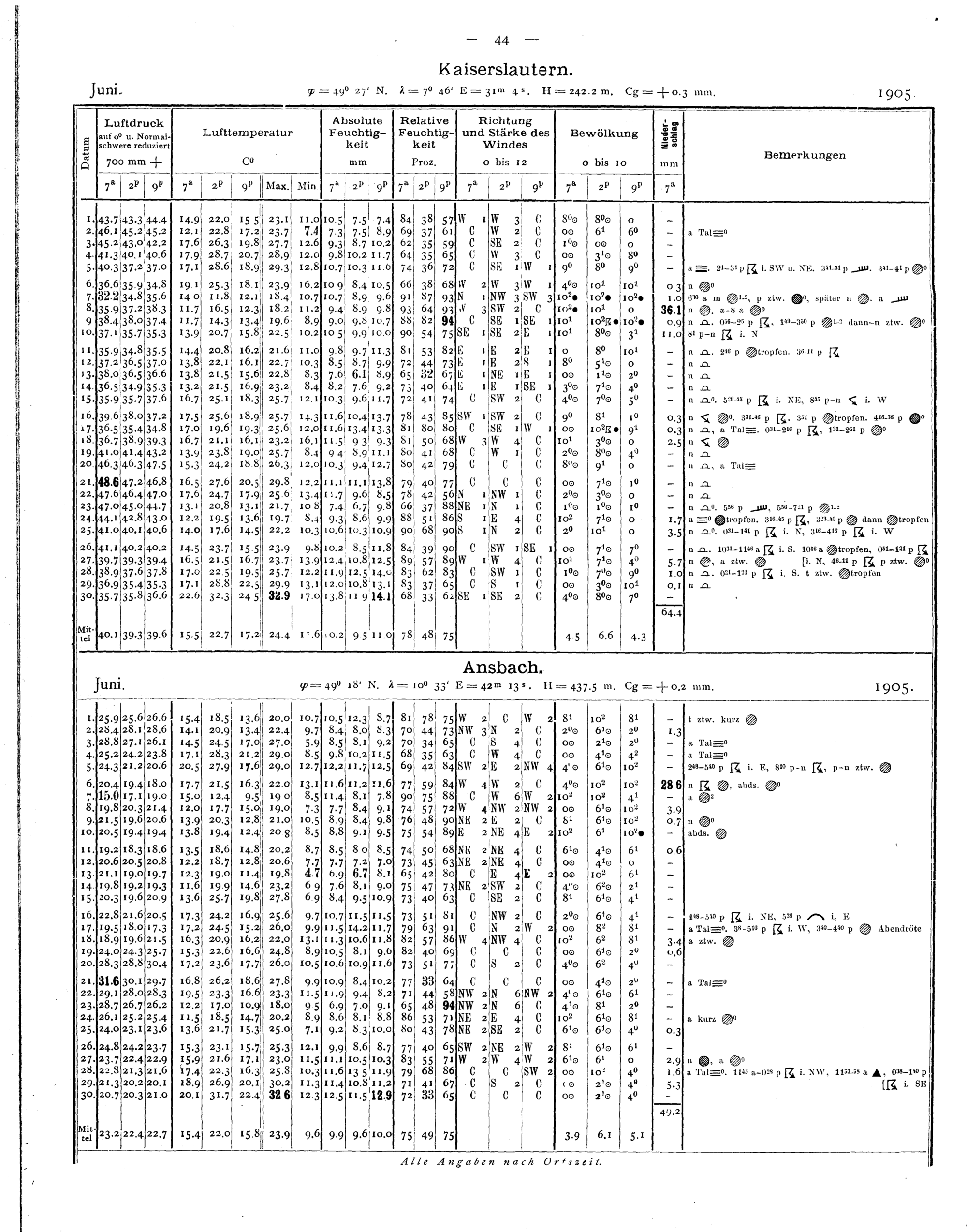 Tägliche Beobachtungen der Stationen II. Ordnung