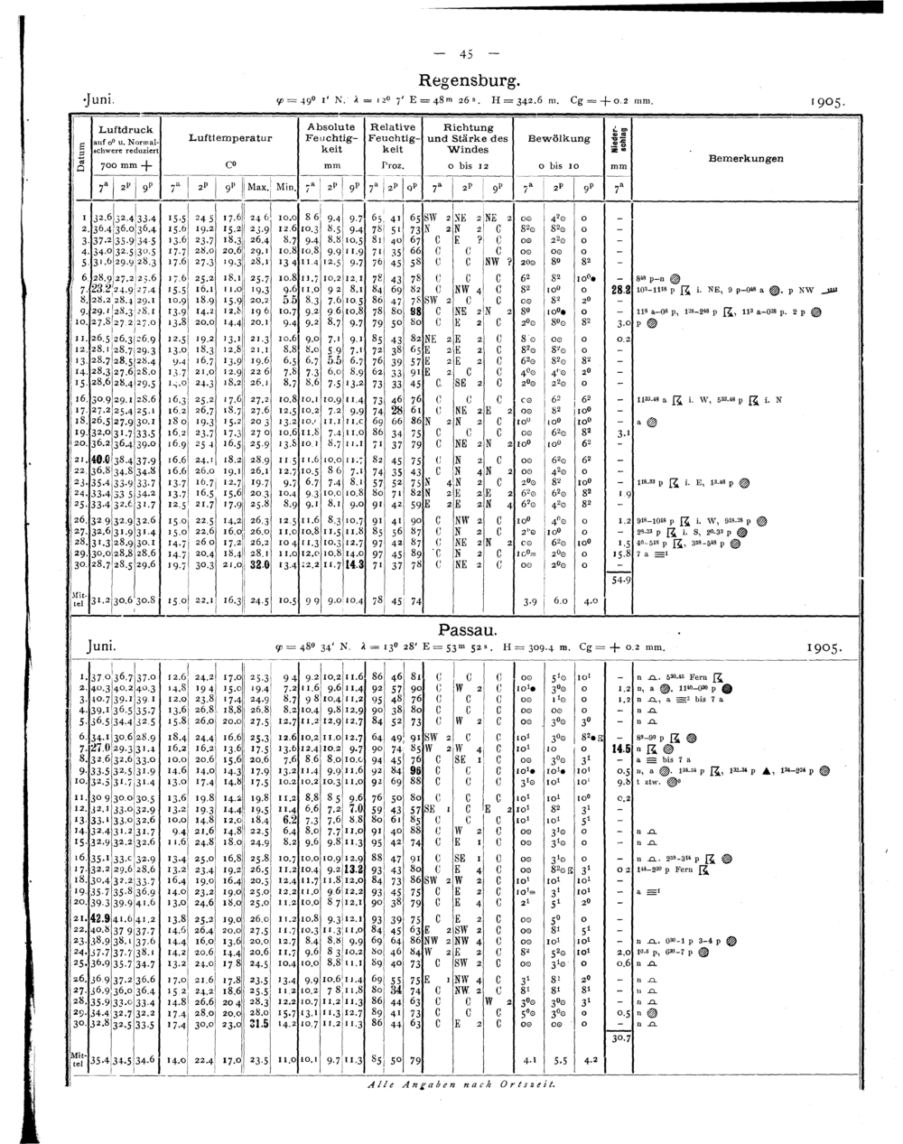 Tägliche Beobachtungen der Stationen II. Ordnung