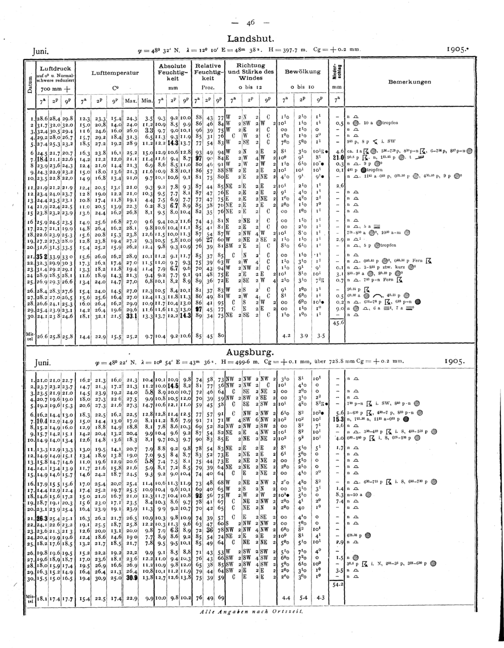 Tägliche Beobachtungen der Stationen II. Ordnung