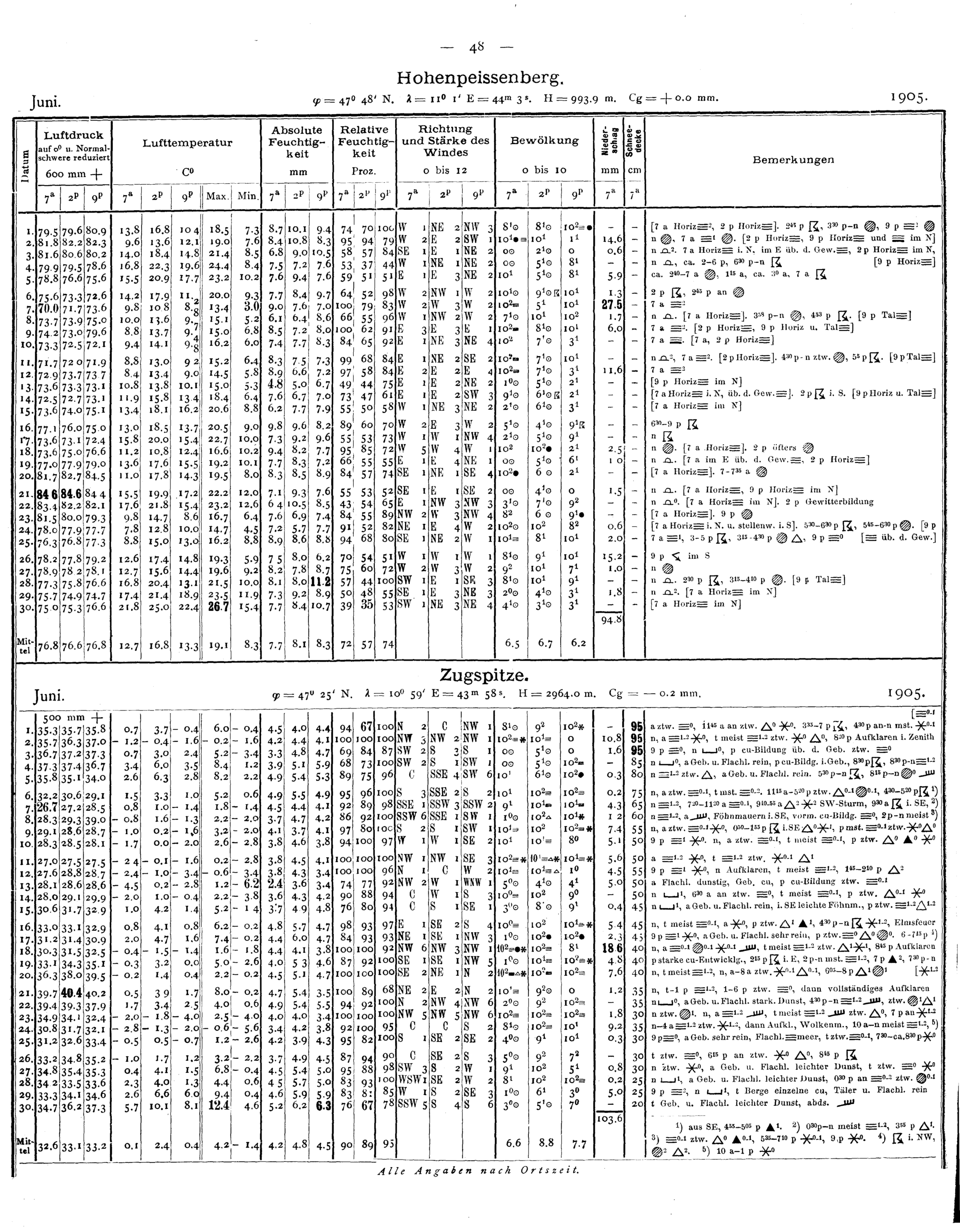 Tägliche Beobachtungen der Stationen II. Ordnung
