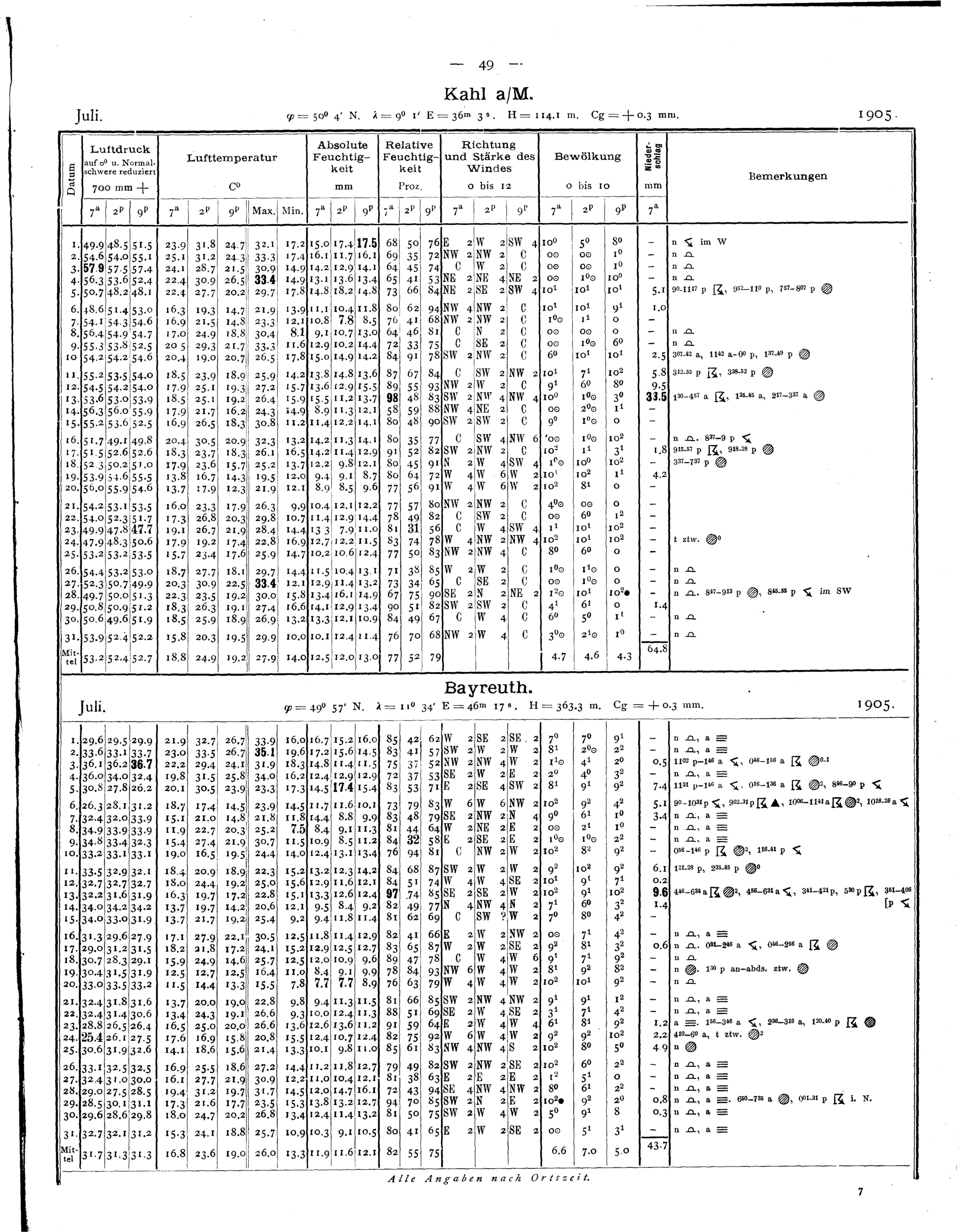 Tägliche Beobachtungen der Stationen II. Ordnung