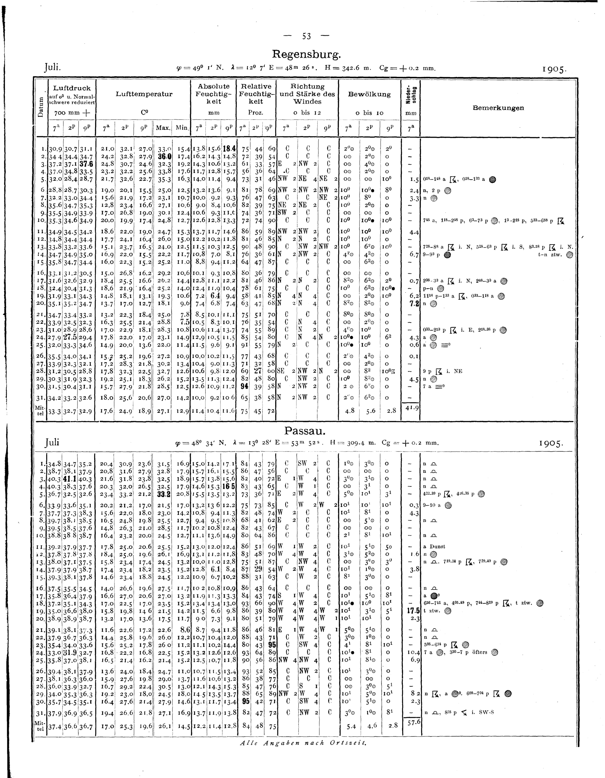 Tägliche Beobachtungen der Stationen II. Ordnung