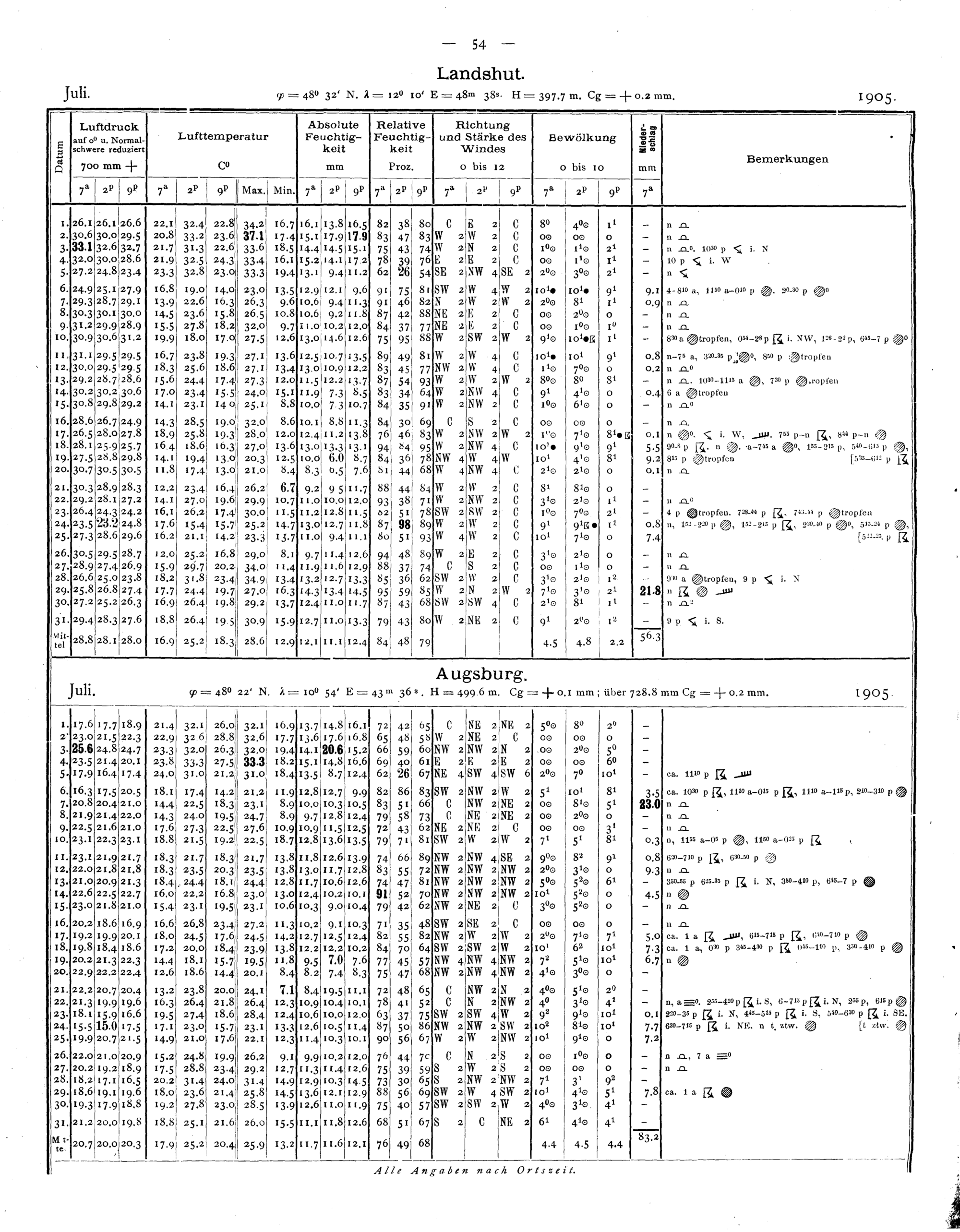 Beobachtungen der meteorologischen Stationen im Königreich Bayern