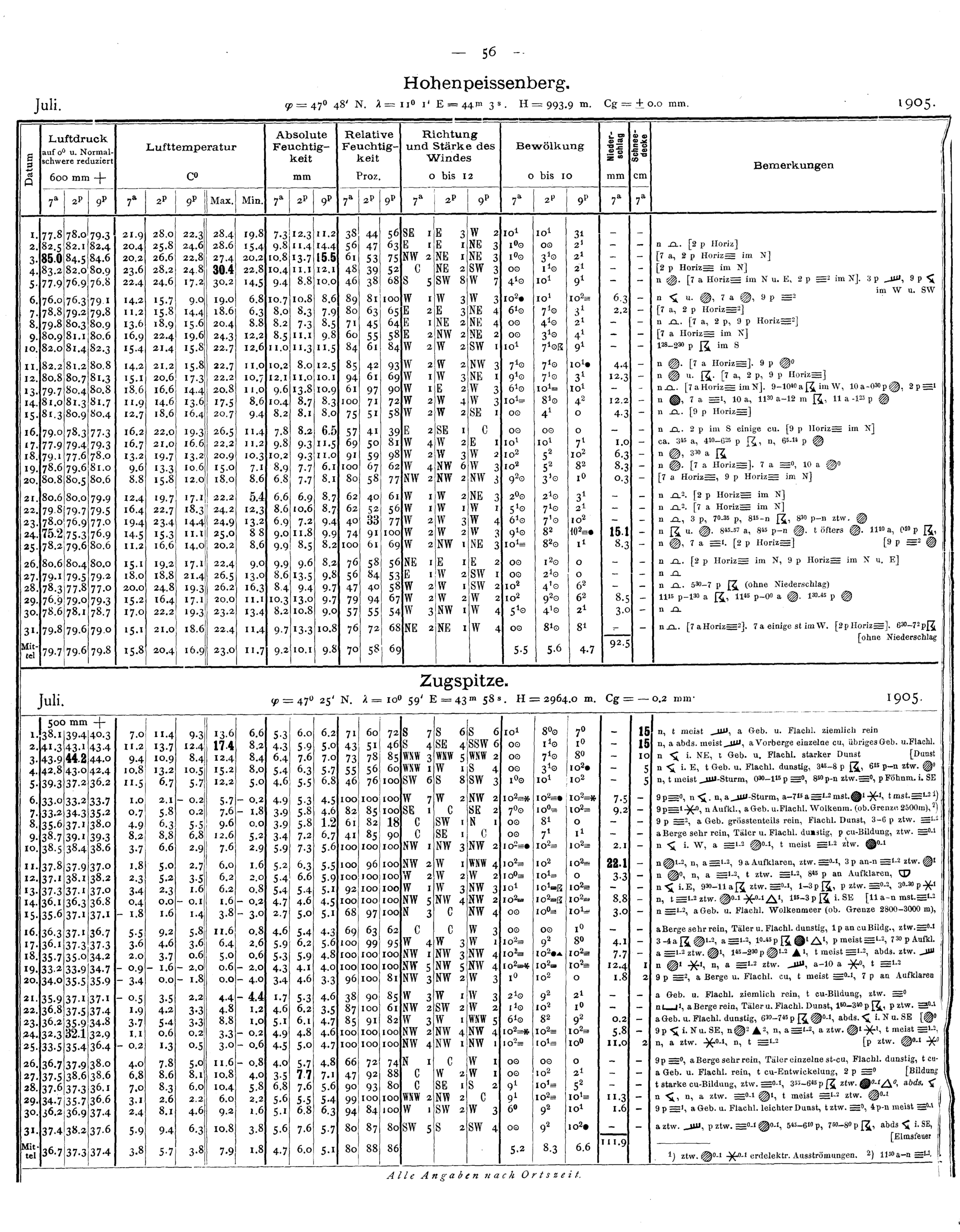 Tägliche Beobachtungen der Stationen II. Ordnung