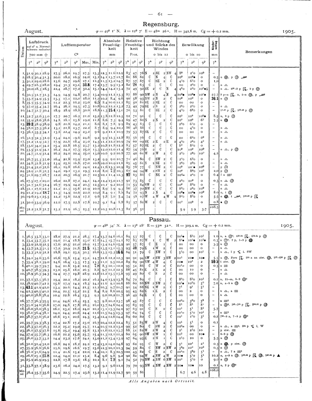 Tägliche Beobachtungen der Stationen II. Ordnung