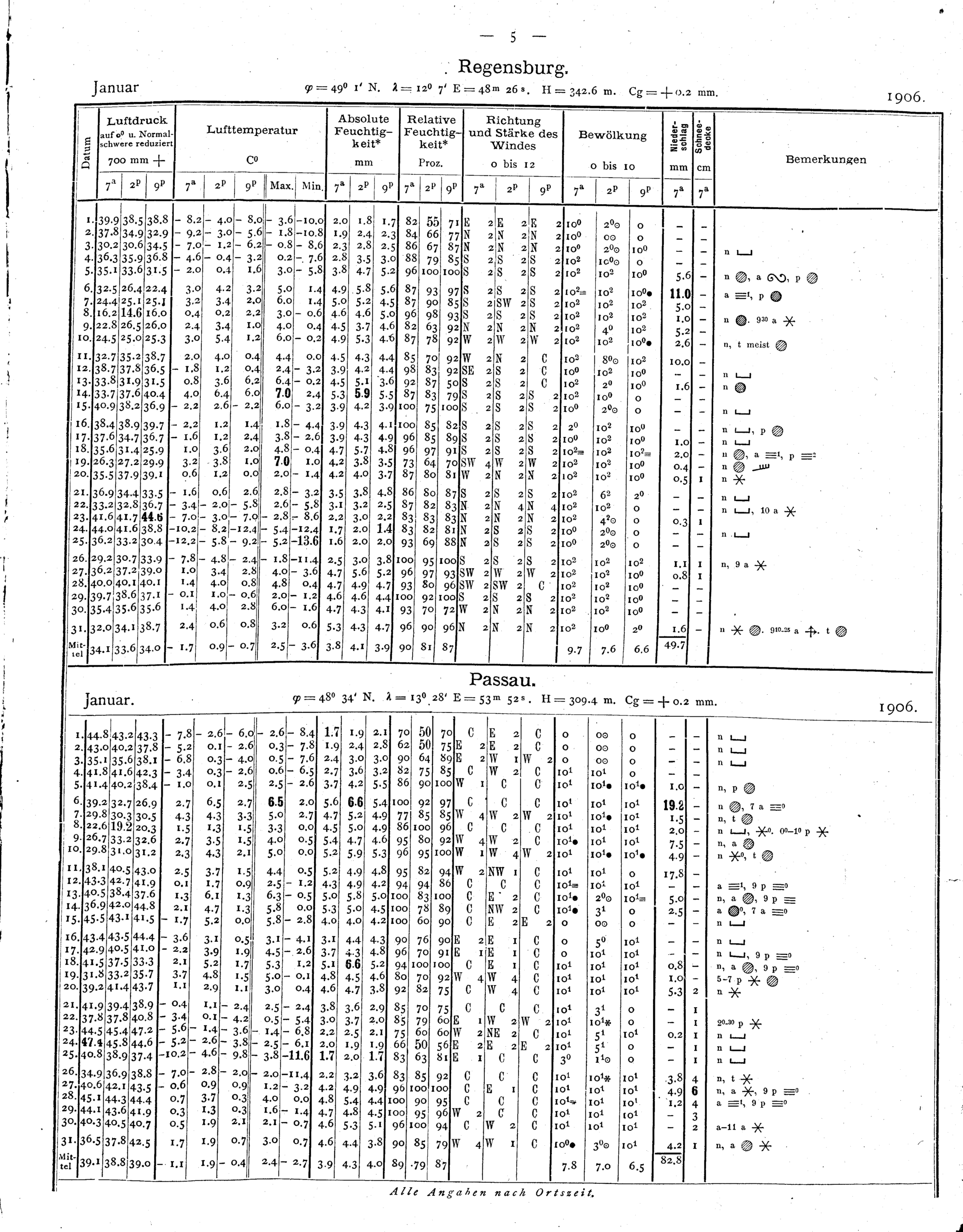 Tägliche Beobachtungen der Stationen II. Ordnung