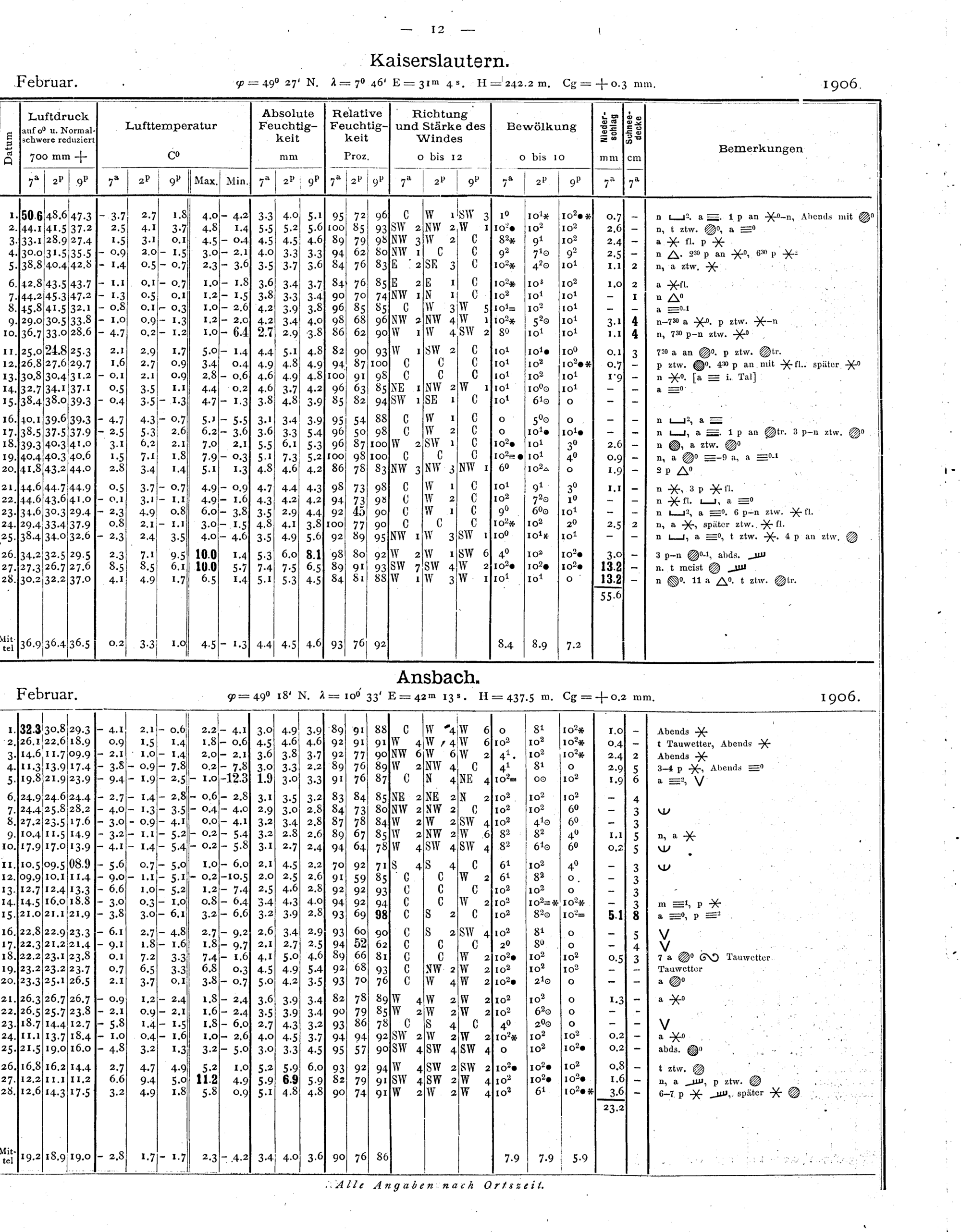 Tägliche Beobachtungen der Stationen II. Ordnung