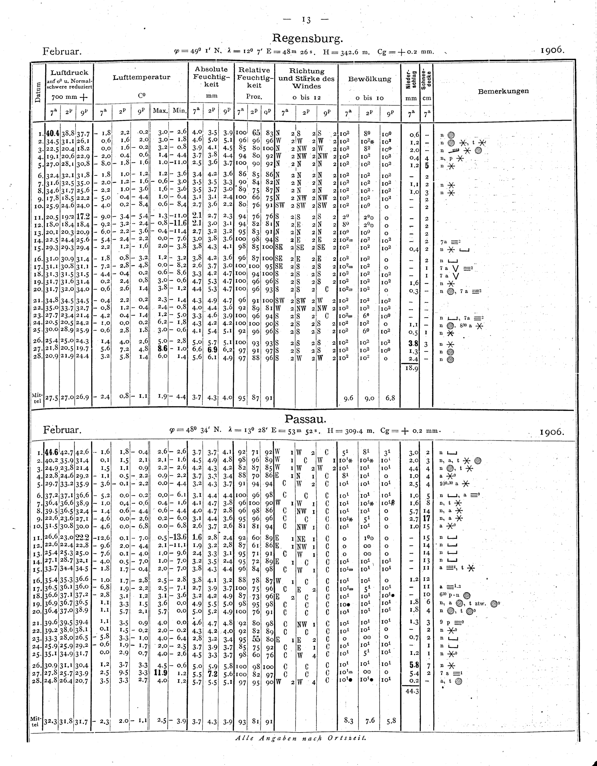 Tägliche Beobachtungen der Stationen II. Ordnung