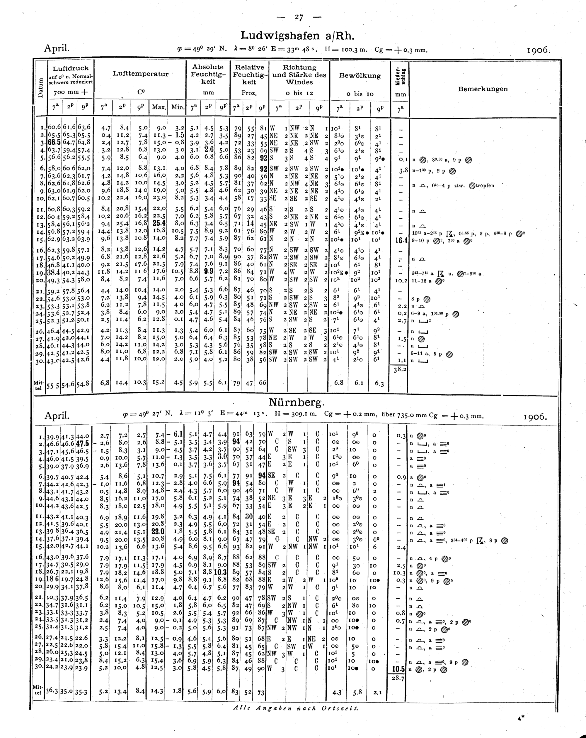 Tägliche Beobachtungen der Stationen II. Ordnung