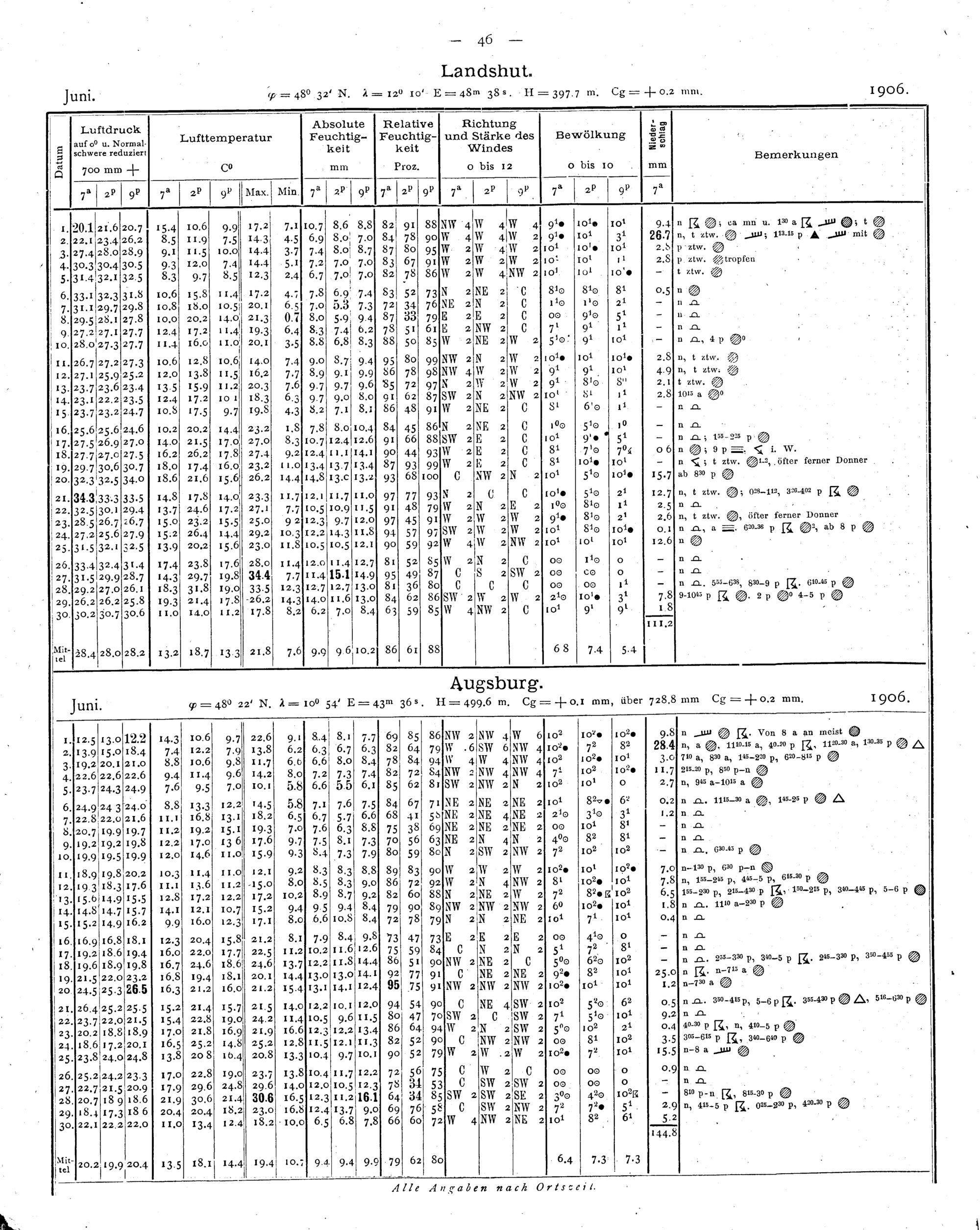 Tägliche Beobachtungen der Stationen II. Ordnung